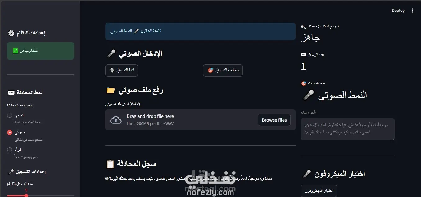 مشروع متكامل لتطوير مساعد صوتي ذكي باللغة العربية باستخدام Streamlit. يهدف التطبيق إلى تحسين تجربة المرضى في عيادة فانكوفر لطب الأسنان من خلال تقديم واجهة تفاعلية تدعم الإدخال الصوتي والنصي. يتميز المساعد الصوتي "ساندي" بالقدرة على: التعرف على الكلام باللغة العربية باستخدام نموذج Vosk. الردود الذكية والمهنية باللغة العربية بناءً على OpenAI API. تحويل النصوص إلى صوت باستخدام gTTS لتوفير تجربة صوتية طبيعية. دعم أنماط محادثة متعددة: نصي، صوتي، أو مزيج بينهما. تسجيل الصوت وتشغيله مباشرة من خلال واجهة المستخدم. التطبيق مصمم ليكون ودودًا وسهل الاستخدام، مع التركيز على تقديم معلومات دقيقة حول مواعيد العيادة وخدماتها وحجز موعد للزائر.