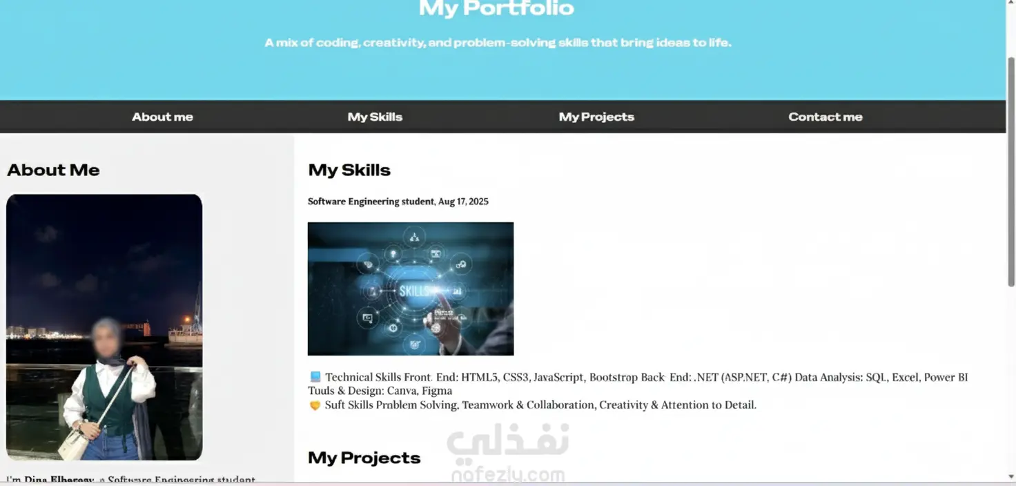 قسم My Skills لعرض المهارات التقنية والمهارات الشخصية بشكل منظم.