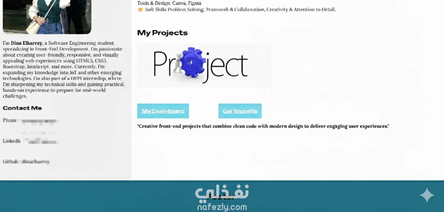 تم تصميم وتطوير موقع بورتفوليو شخصي احترافي لعرض المهارات والمشروعات الخاصة بي كمطوّرة واجهات أمامية (Front-End Developer).