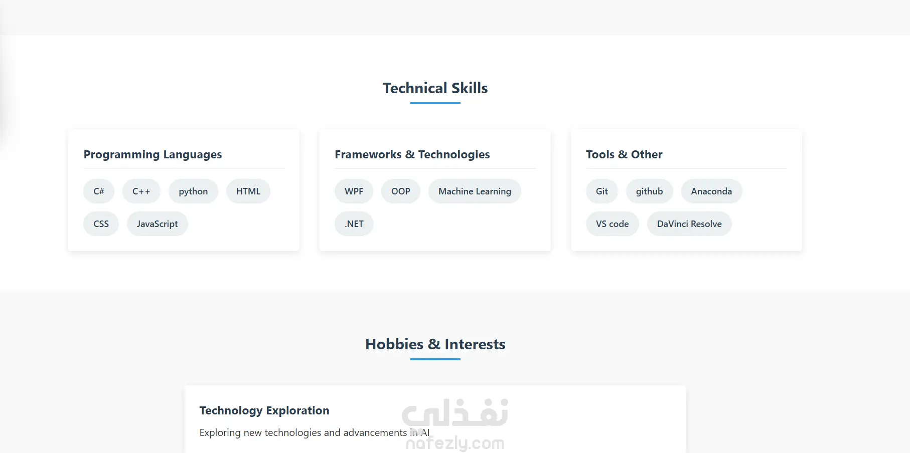 Portfolio to display skills, experience, a brief about the person, links to his contact methods.