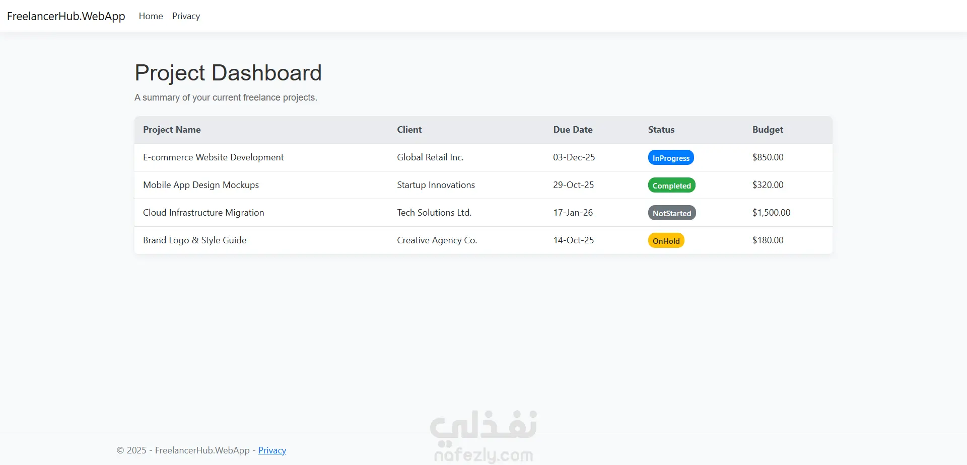تطبيق ويب متكامل ضمن أعمالي، مصمم كلوحة تحكم احترافية لمساعدة المستقلين (Freelancers) والفرق الصغيرة على إدارة مشاريعهم بكفاءة. يقدم النظام واجهة مركزية ومنظمة لعرض كافة المشاريع وتفاصيلها وحالتها، مما يسهل اتخاذ القرارات ومتابعة سير العمل.