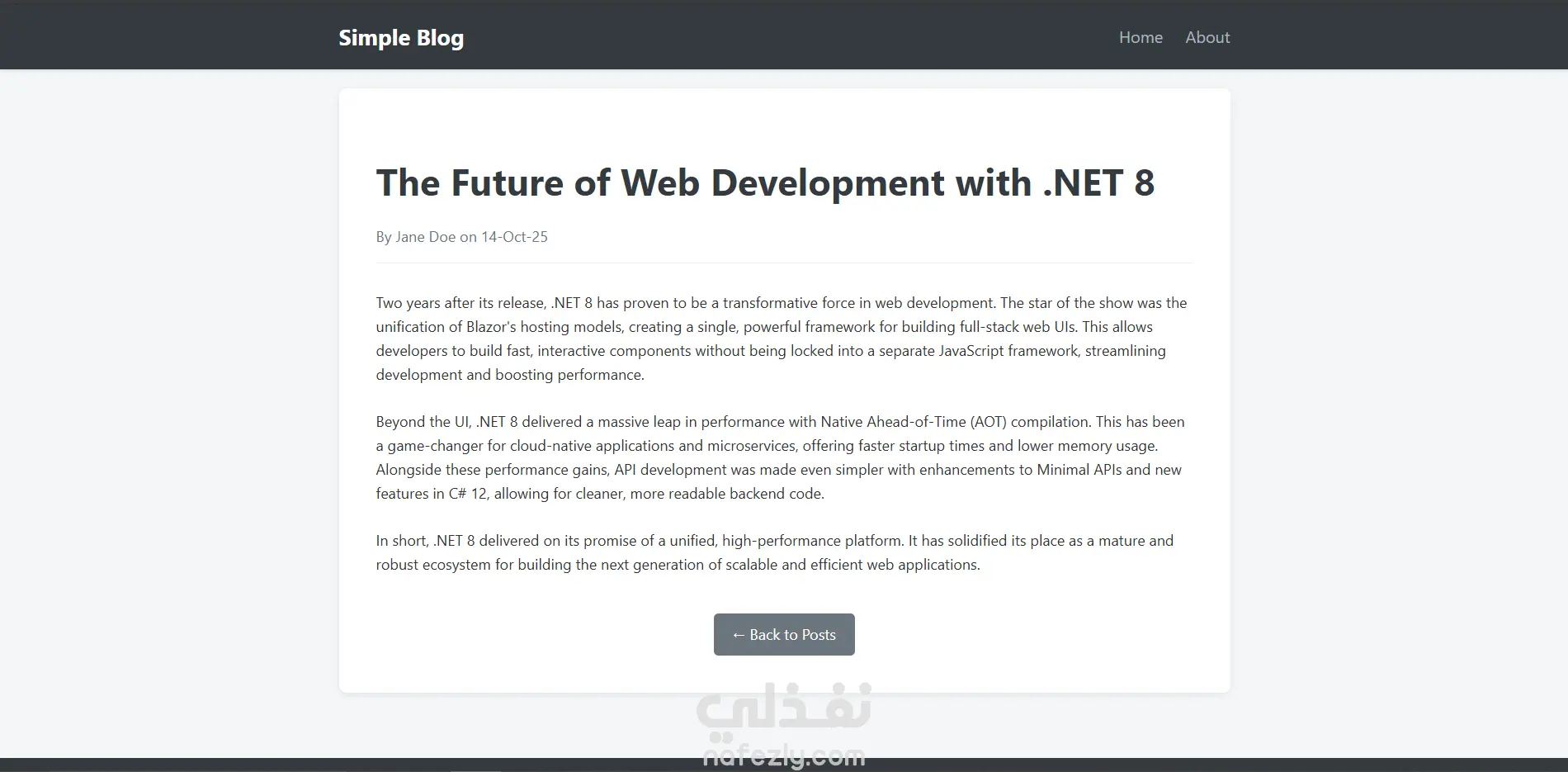 الواجهة الخلفية (Backend): C#, ASP.NET Core 8