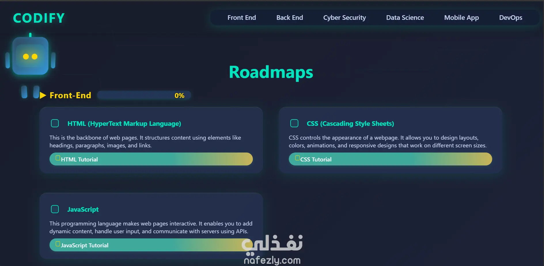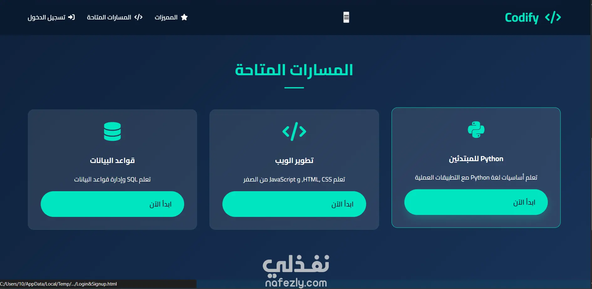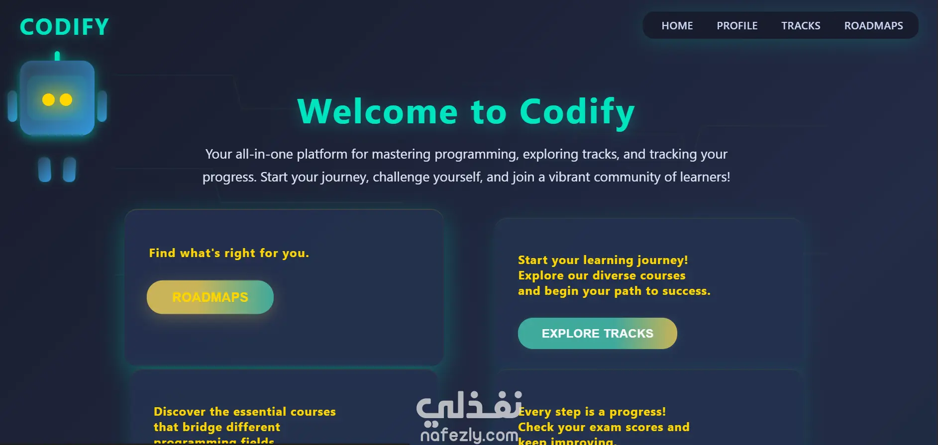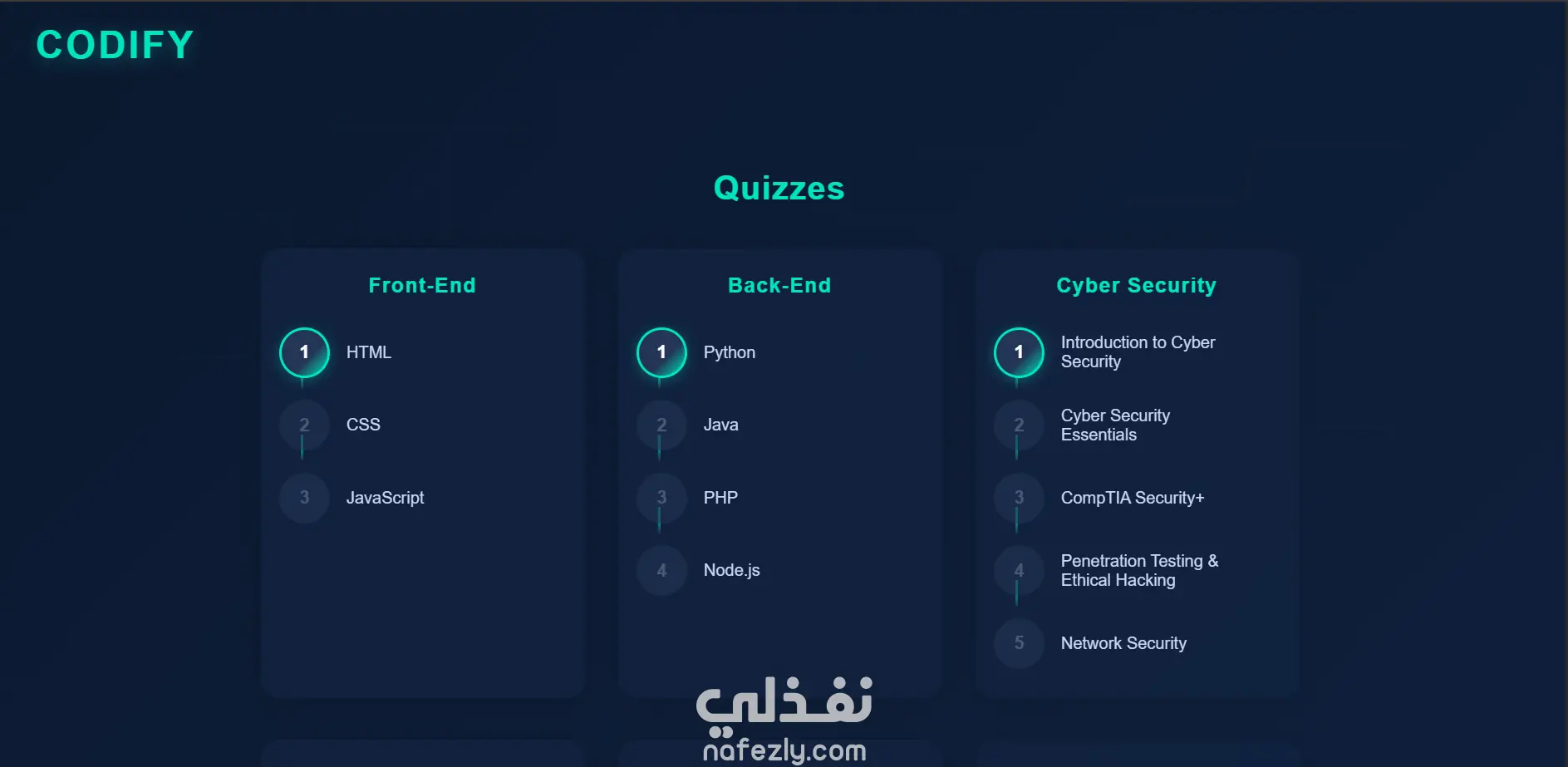 Codifyy هو موقع ويب تعليمي تفاعلي يهدف إلى مساعدة المستخدمين على تعلم البرمجة بطريقة مبسطة وجذّابة.