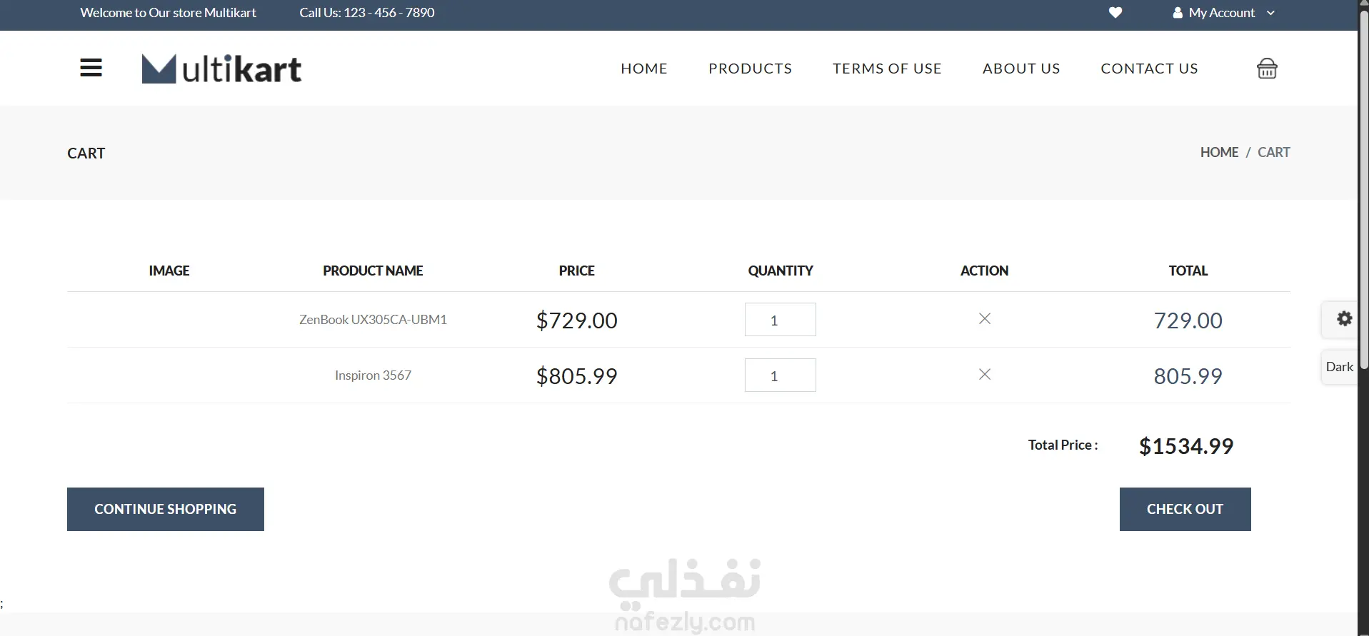 سلة مشتريات (Shopping Cart) مع حساب إجمالي المبلغ.