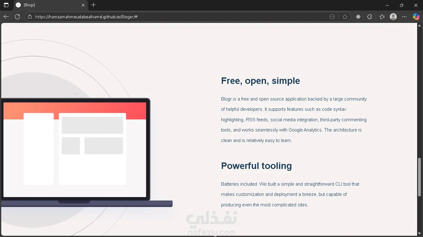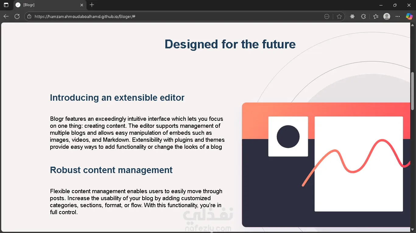Landing Page بسيطة وسريعة مصممة لعرض مدونة أو مقالات بطريقة احترافية، مع تصميم نظيف ومتجاوب يناسب جميع الأجهزة. الوصف الكامل (Full Project Description) هذه الصفحة عبارة عن Landing Page احترافية مخصصة لعرض مدونة أو منصة كتابة محتوى بشكل جذاب ومباشر. تم تطوير الصفحة باستخدام HTML5, CSS3, JavaScript، مع التركيز على: التصميم النظيف سهولة التصفح سرعة التحميل التناسق البصري التجاوب الكامل مع الشاشات الـ Landing Page توفر عرضًا واضحًا لعنوان المدونة، المحتوى، الأقسام الأساسية، وصورة أو نموذج لمقالة، مما يجعلها مناسبة للمواقع الشخصية أو منصات التدوين البسيطة. ⭐ مميزات المشروع (Key Features) Landing Page كاملة وجاهزة للاستخدام تصميم حديث يناسب مواقع المدونات والمحتوى تخطيط منظم يوفر تجربة مستخدم ممتازة متجاوبة بالكامل مع جميع الأجهزة (Mobile – Tablet – Desktop) سرعة تحميل عالية قابل للتعديل والتخصيص بسهولة استخدام كود نظيف ومهيكل إمكانية إضافة أقسام أو مقالات بسهولة حسب الحاجة التقنيات المستخدمة (Tech Stack) HTML5 CSS3 JavaScript (ES6+)