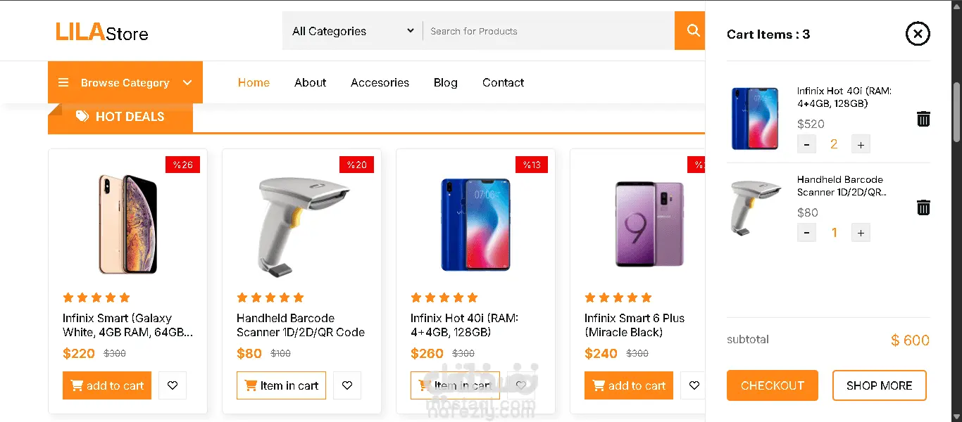 مشروع متجر إلكتروني ديناميكي تم تطويره باستخدام HTML, CSS, و JavaScript لعرض وإدارة المنتجات بشكل تفاعلي. يحتوي المتجر على صفحات متعددة مثل صفحة المنتجات وصفحة الدفع (Checkout) مع إمكانية قراءة البيانات من ملف JSON لعرض المنتجات تلقائيًا. تم التركيز على تجربة مستخدم سلسة وتصميم متجاوب يناسب جميع الأجهزة، بالإضافة إلى تنظيم الكود بطريقة احترافية وسهلة التوسع. ⚙️ المهارات المستخدمة (Skills Used): HTML5 CSS3 JavaScript (DOM & JSON handling) Responsive Web Design UI/UX Principles Dynamic Data Rendering Frontend Logic Code Organization