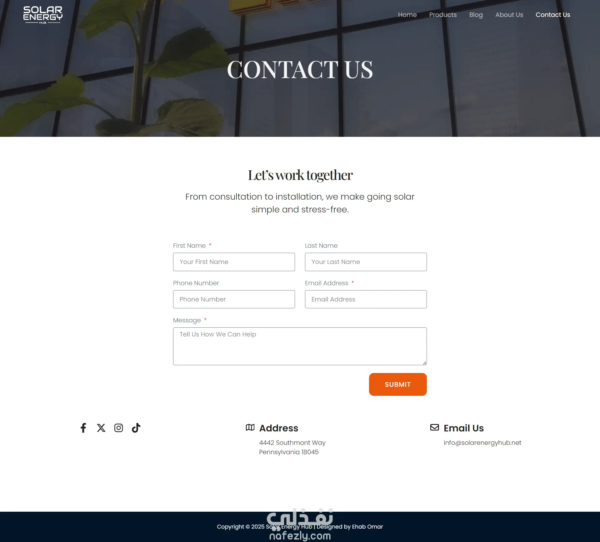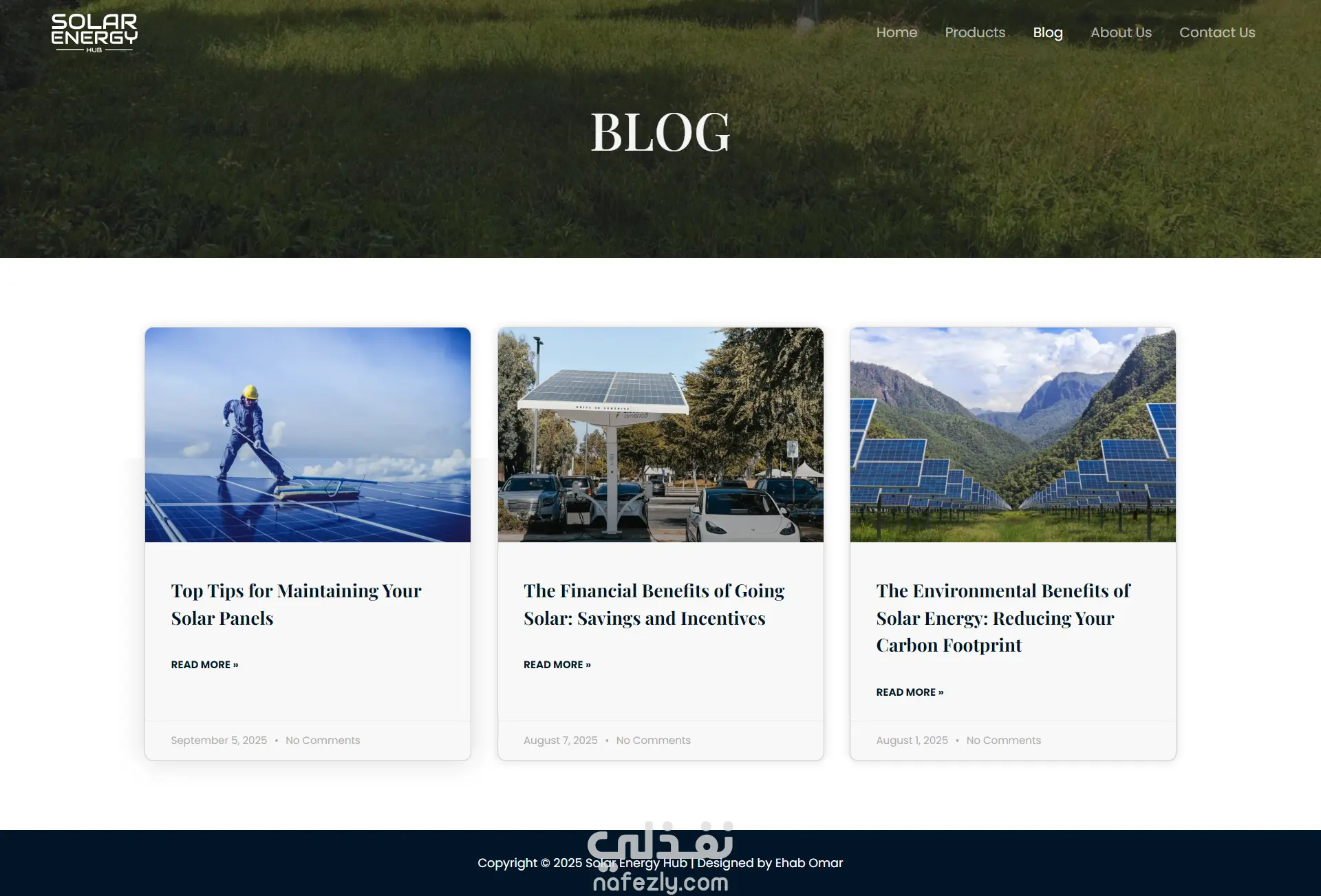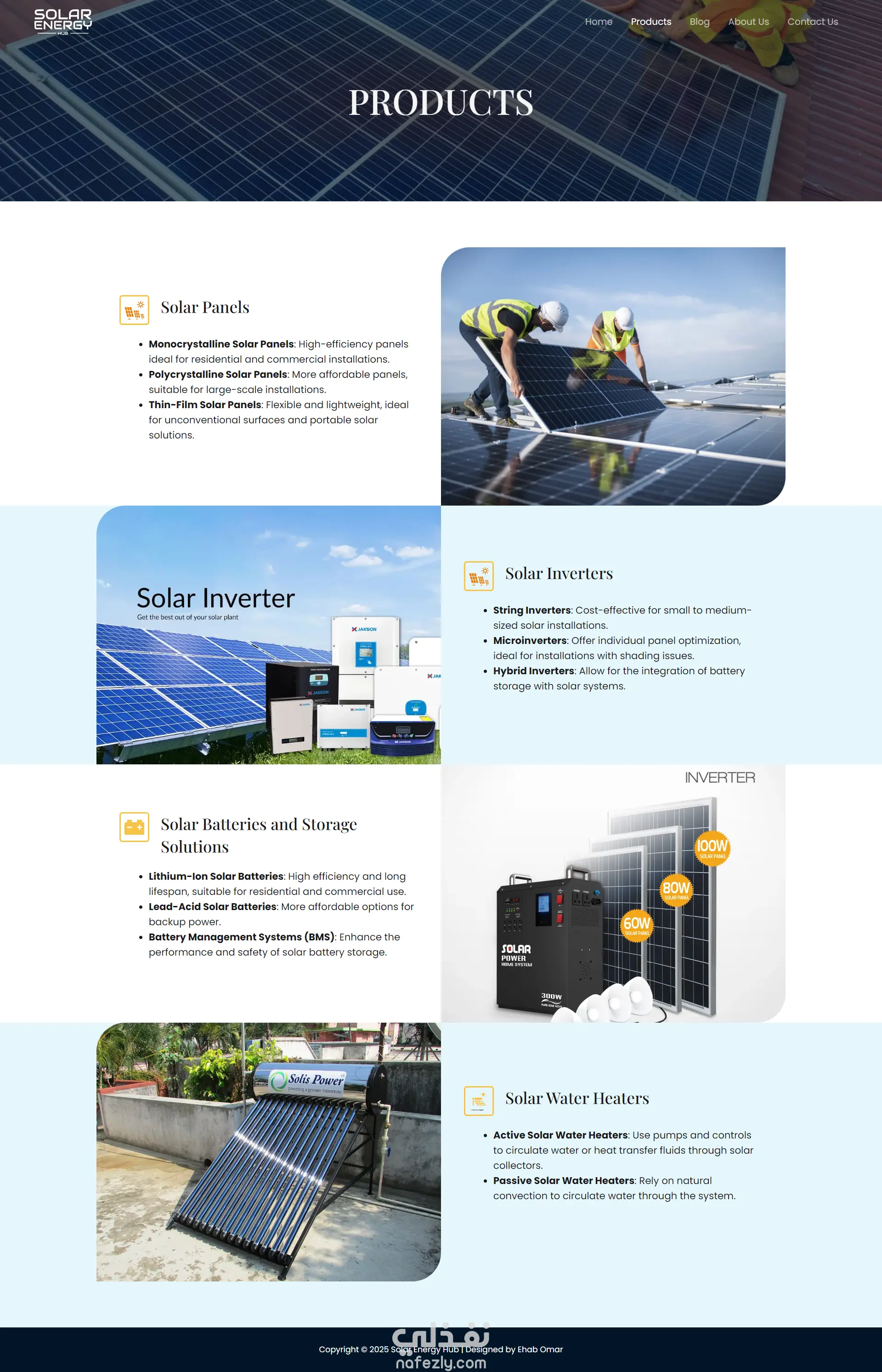 إنشاء صفحة المنتجات (Products) لعرض أنواع حلول الطاقة الشمسية بشكل منسق وواضح.