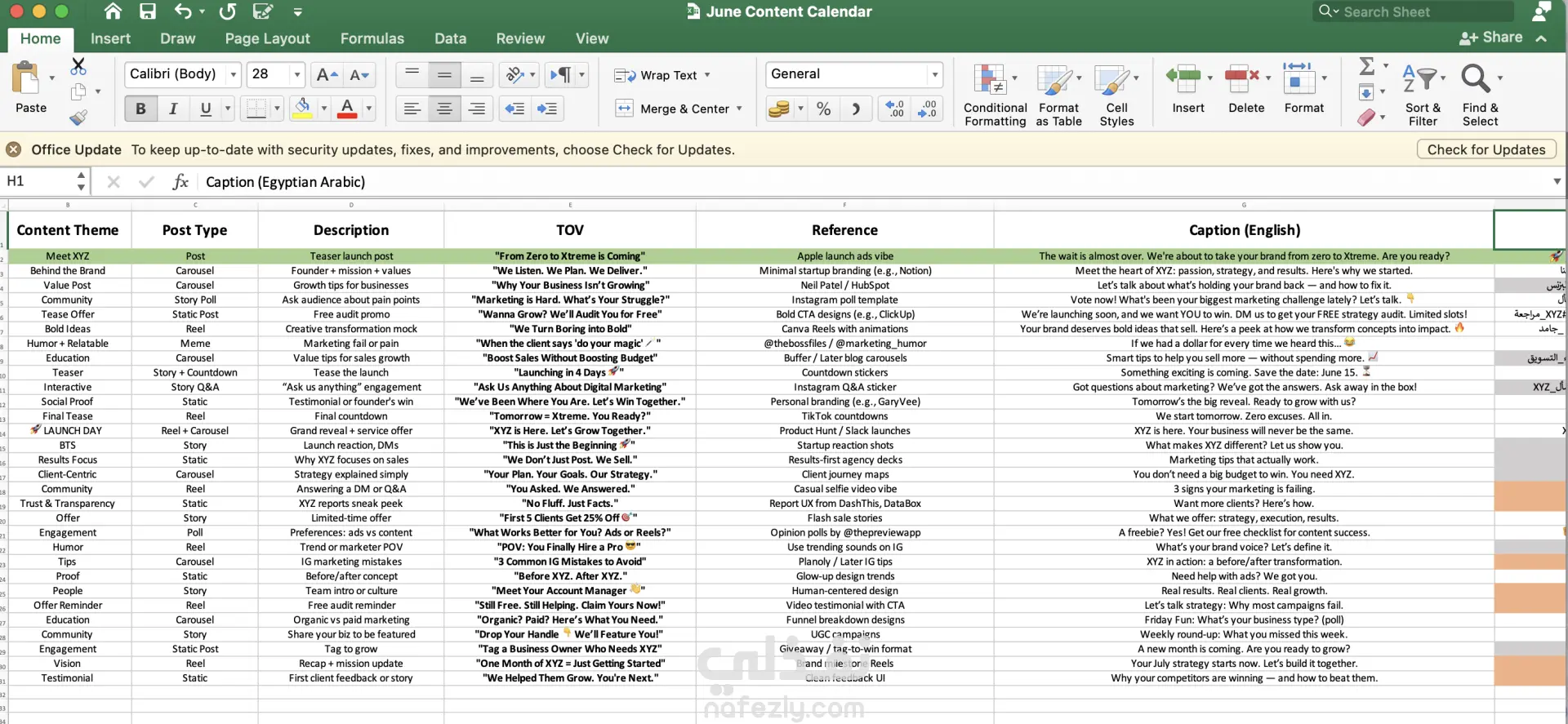 قمت بإعداد وتصميم تقويم محتوى استراتيجي متكامل لعلامة تجارية بهدف تنظيم عملية النشر وتحقيق أهدافها التسويقية.
