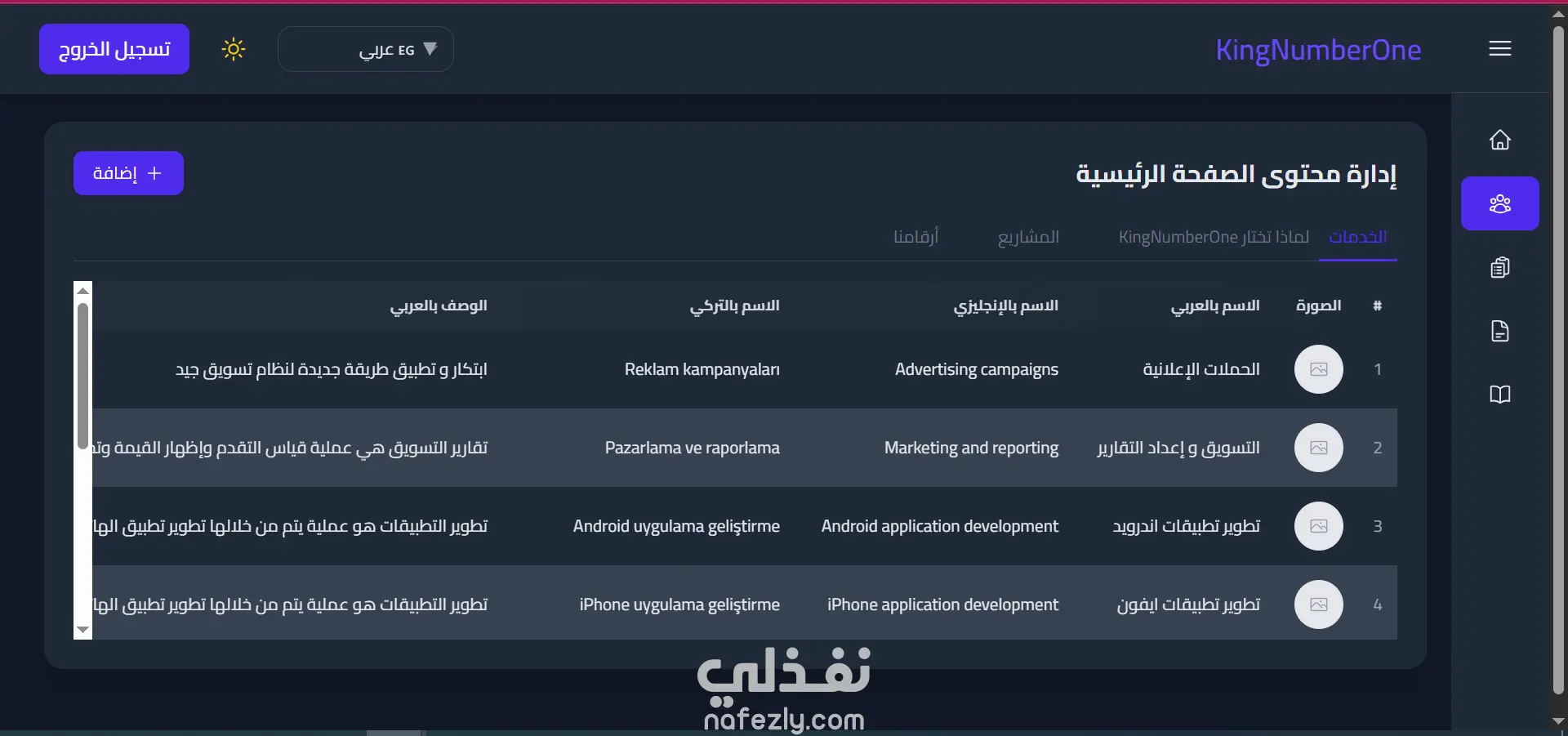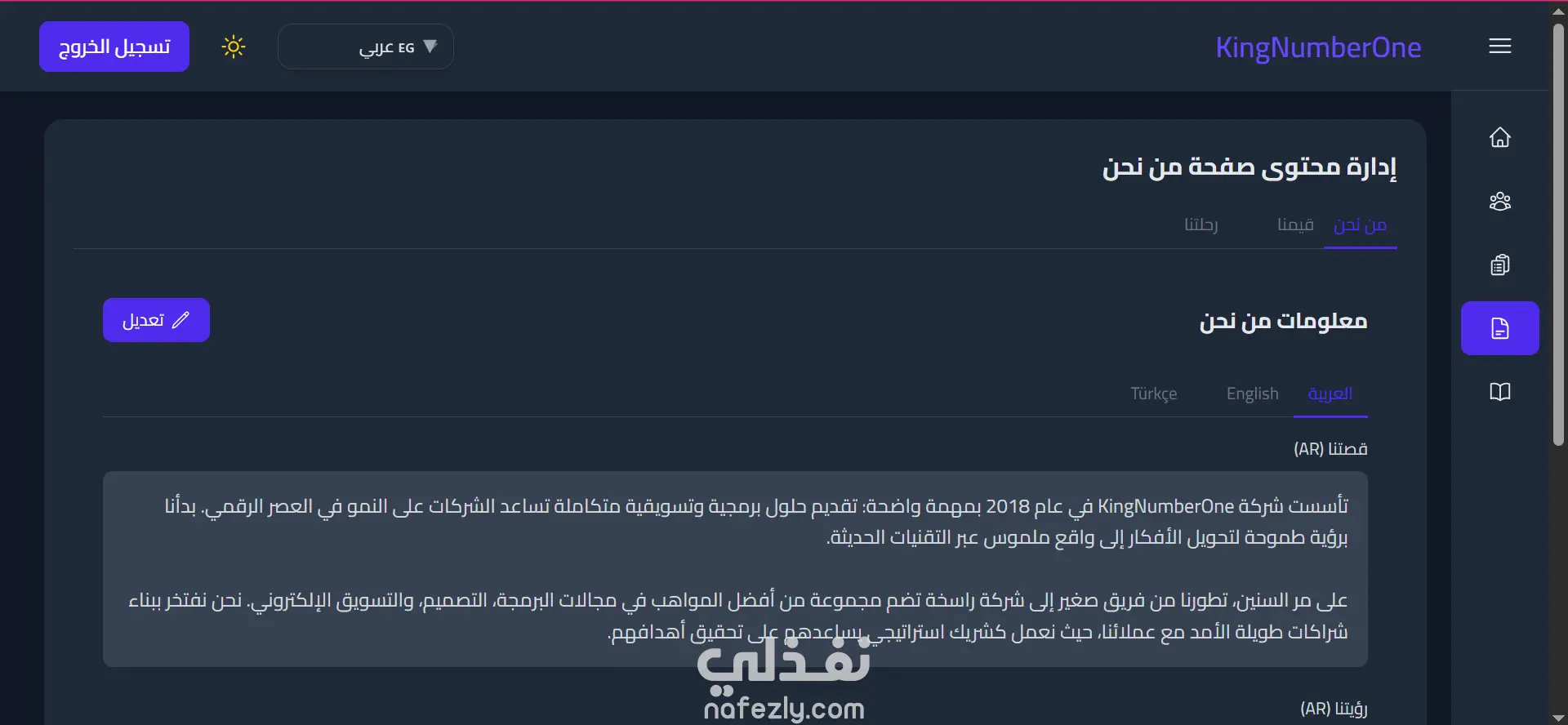 الموقع مزود بلوحة تحكم للتحكم فى جميع اقسام الموقع