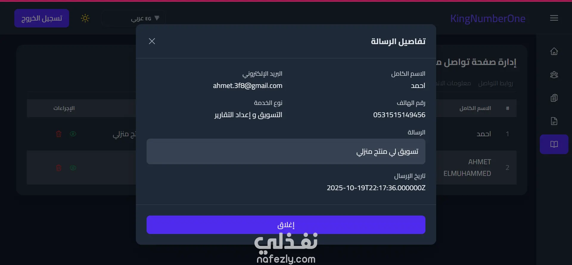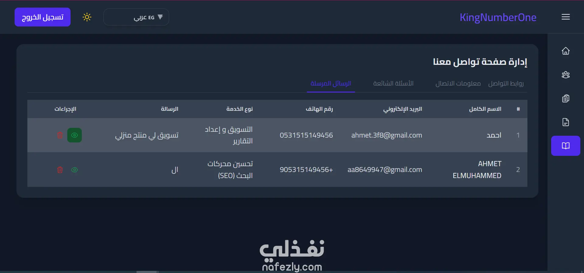 يوجد فى صفحة تواصل معنا امكانية ارسال رسالة من اى عميل وتظهر الرسالة فى لوحة الحكم