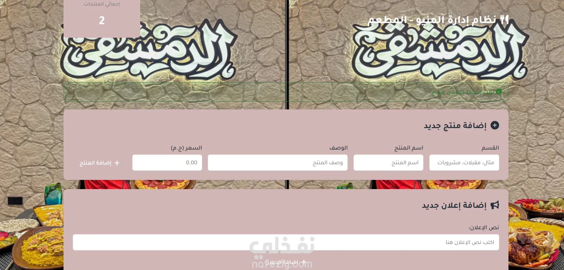 عمل موقع للمنيو بال QR CODE للصاله مكون من صفحه المنيو وصفحه الكاشير او الويتر وصفحه الdashboord للتحكم في صفحه المنيو والاعلان