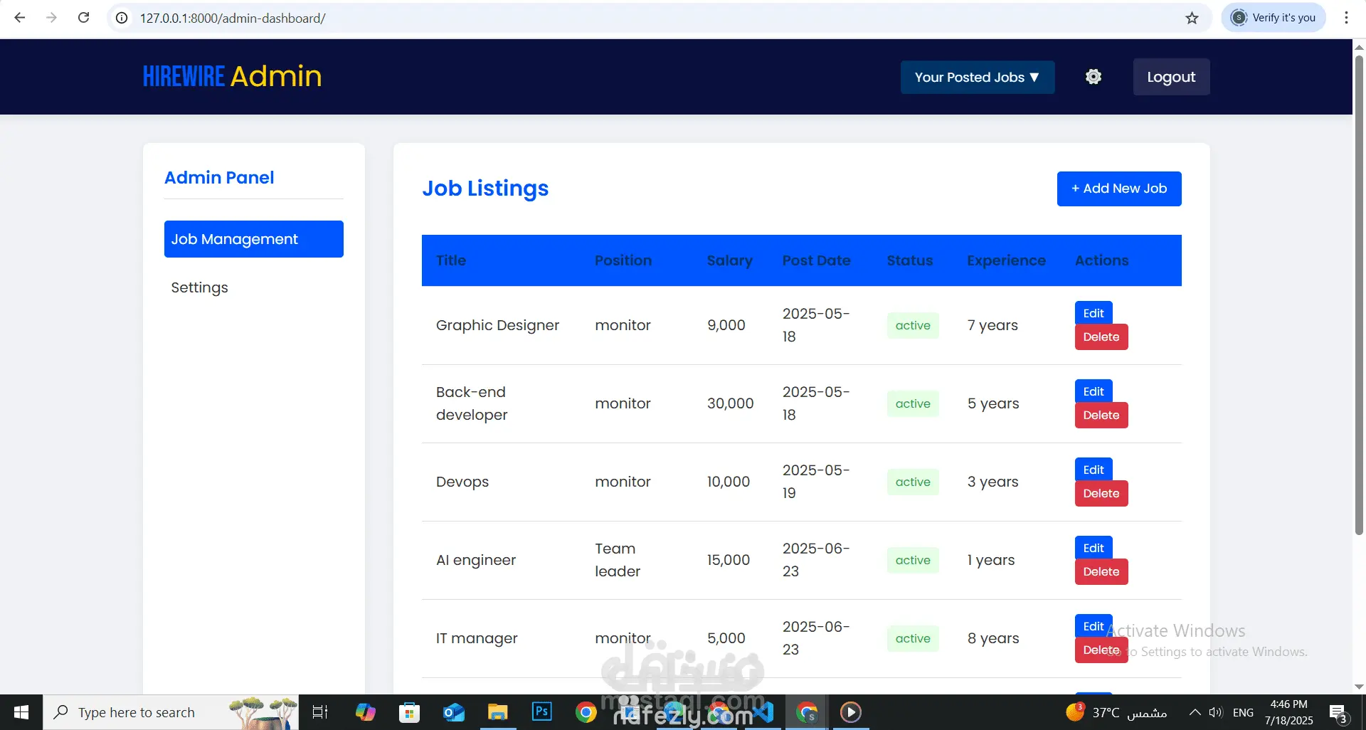 HireWire هي منصة حديثة وديناميكية للبحث عن الوظائف، تم تطويرها كمشروع كامل لتقنيات الويب. مبنية بأسلوب Full Stack بحيث تقدم تجربة غنية لكلٍ من الباحثين عن عمل وأصحاب الشركات، مع التركيز على سهولة الاستخدام، الأمان، والاستجابة السريعة.
