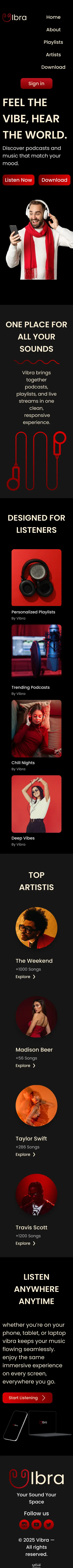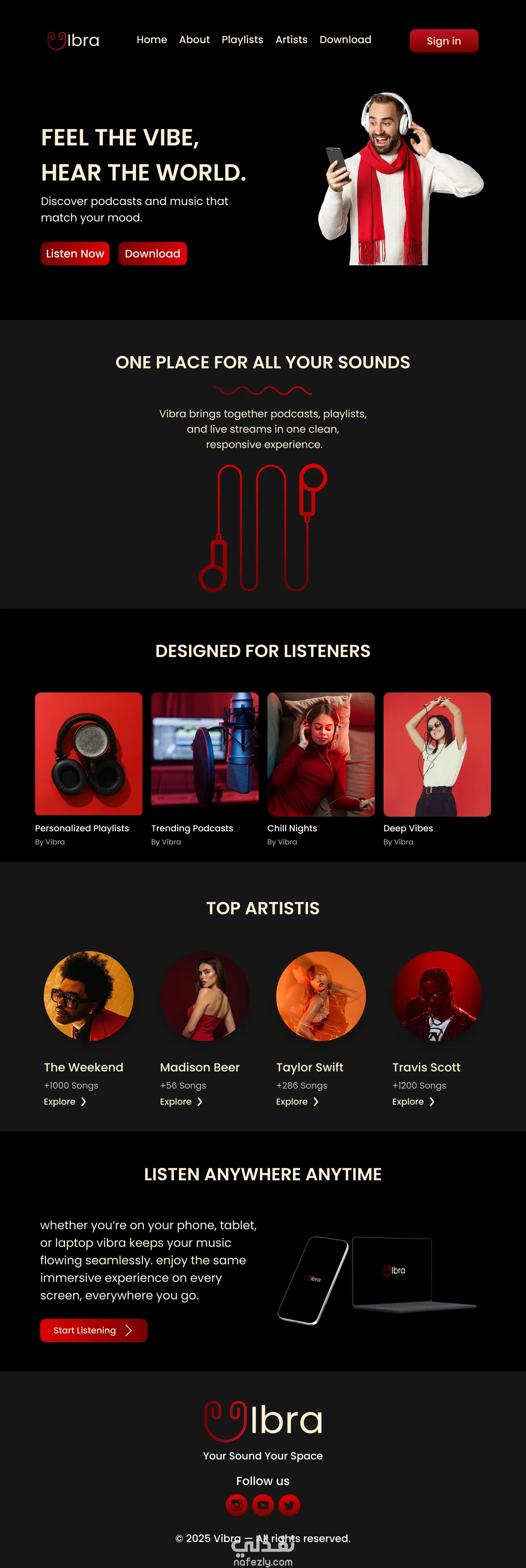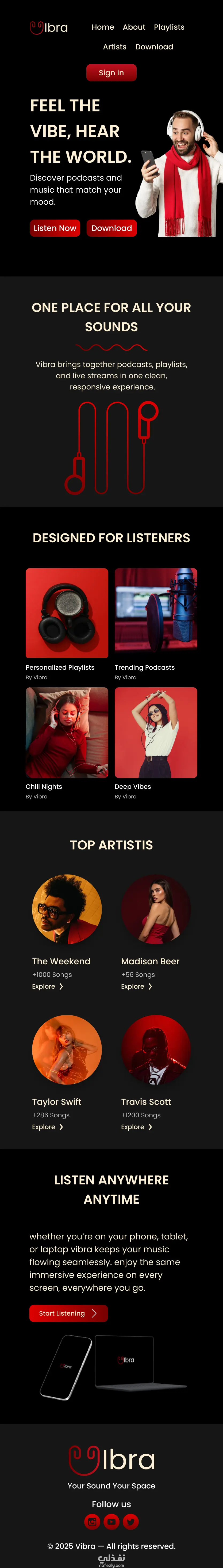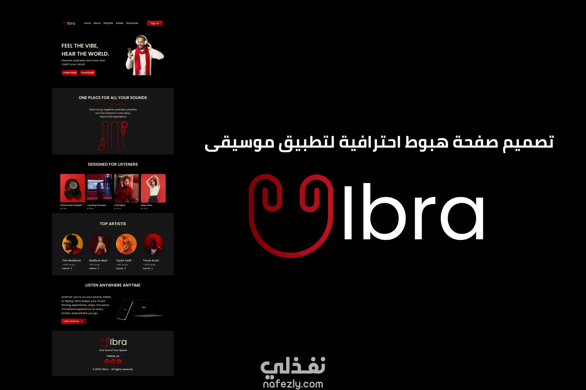 تصميم صفحة هبوط احترافية لتطبيق موسيقى Vibra