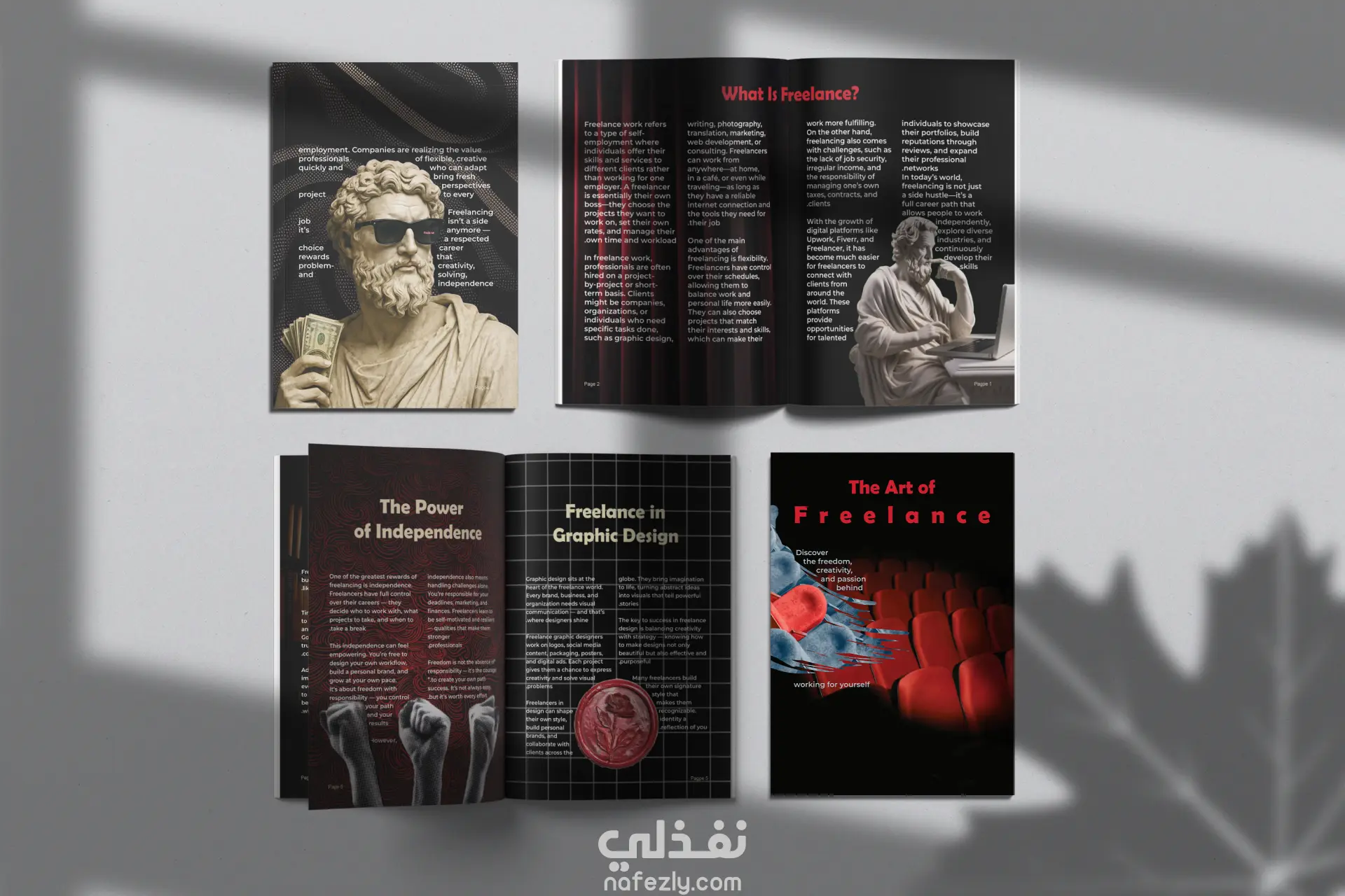 إخراج فني جذاب يجعل المجلة قابلة للطباعة أو العرض الرقمي.