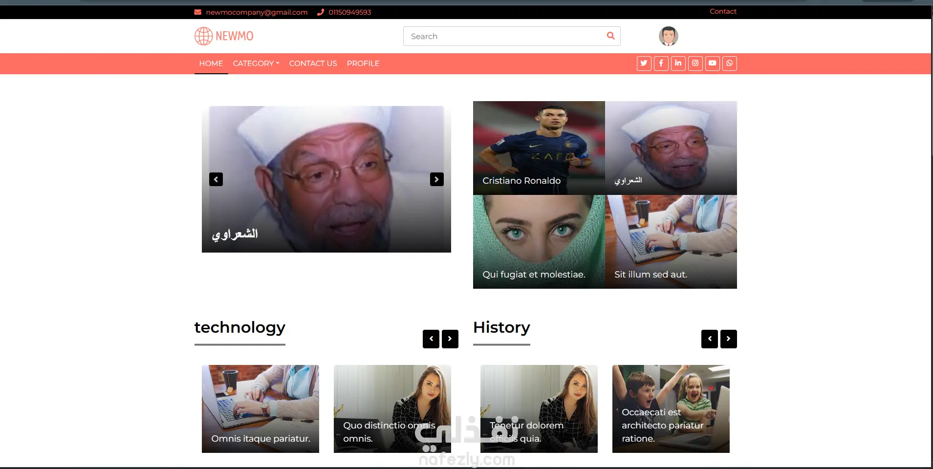 مبني باستخدام HTML، CSS، Bootstrap، JavaScript.