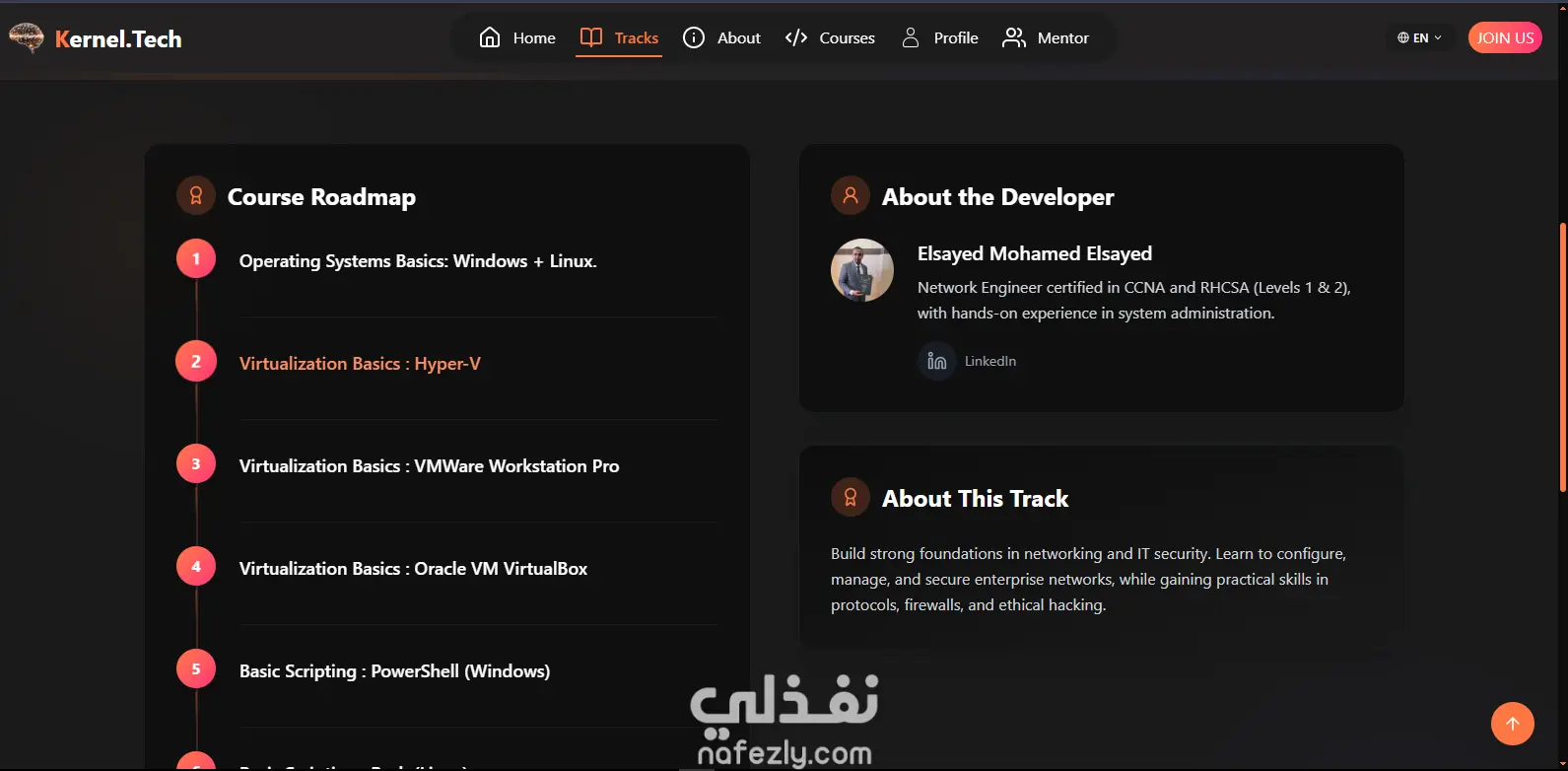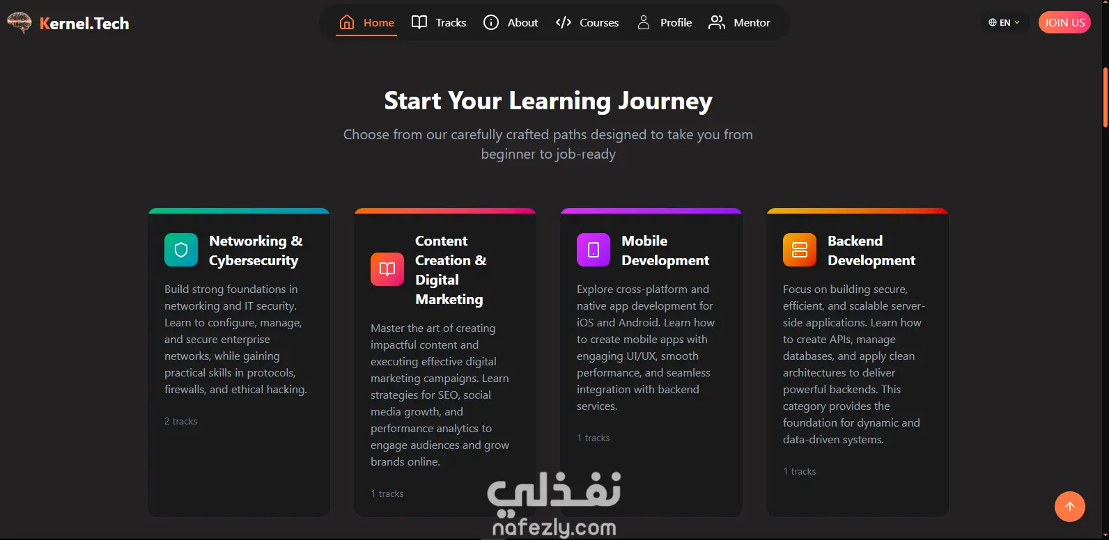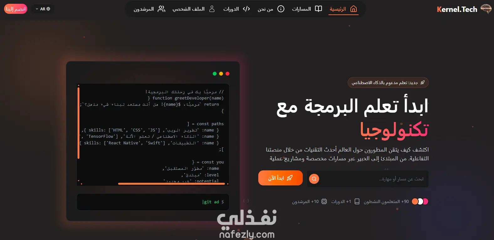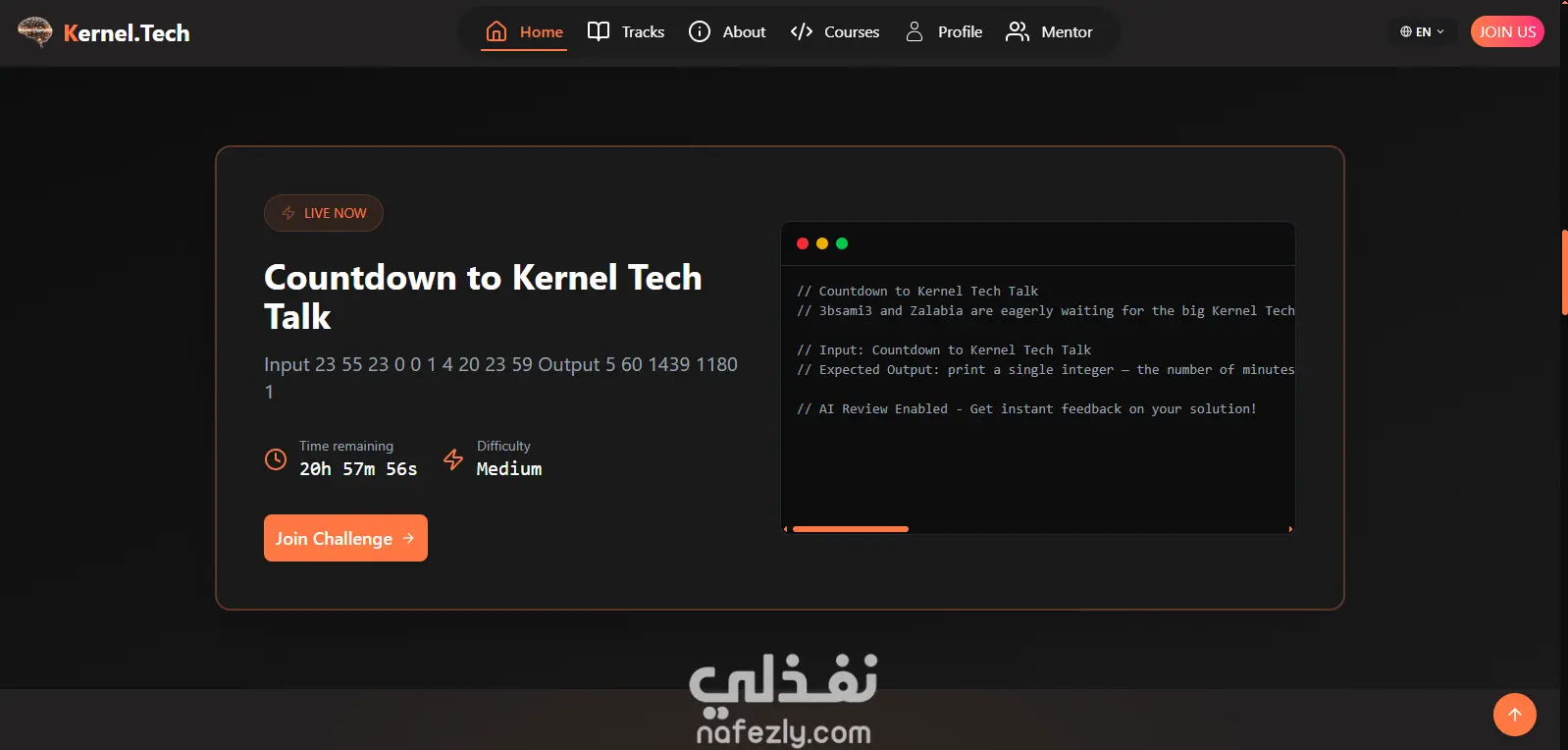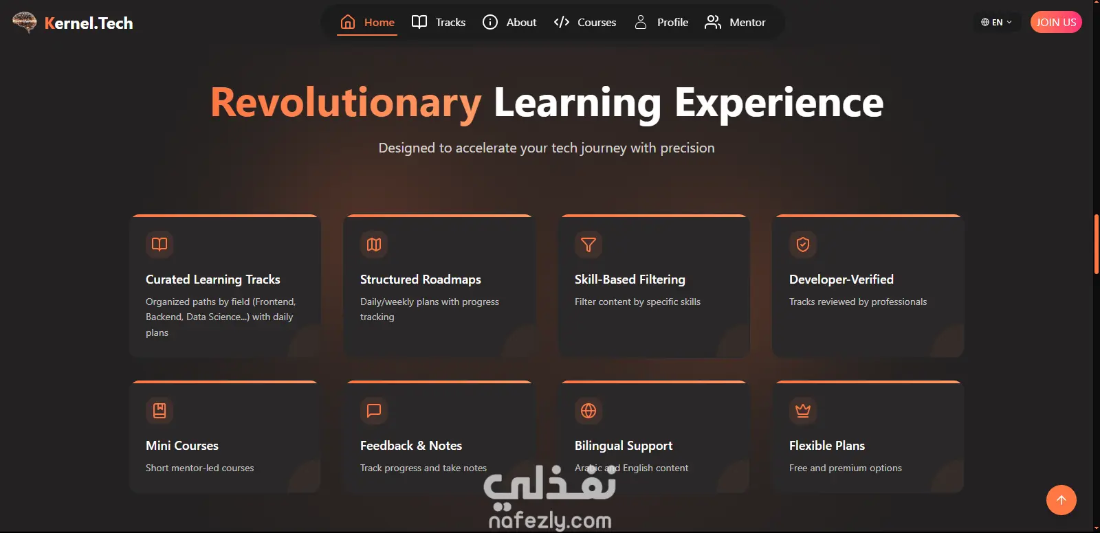 Kernel Tech – منصة تعليمية تفاعلية متكاملة الفكرة : مشروع تطوعي بدأناه في Kernel Software Solutions بهدف مساعدة الطلاب في مجال التقنية من خلال توفير خريطة تعلم منظمة (Roadmap) من مصادر مفتوحة ومجربة من مطورين محترفين. تطورت الفكرة إلى منصة تعليمية تفاعلية متكاملة تساعد المتعلمين على بناء مسار واضح وتطبيق عملي أثناء التعلم. أهم المميزات : - نظام Roadmaps واضح لتتبع التقدم مع شهادات عند الإنهاء. - داشبورد مخصصة للمدرسين لإدارة الكورسات (مسجلة أو لايف). - نظام اشتراكات مدفوعة يتيح جلسات Mentorship 1:1 بحجز تلقائي من Calendar + Zoom. - إمكانية إرسال الأكواد للمراجعة (Code Review) من المينتور المختار. - تحديات يومية + نظام نقاط + لوحة ترتيب (Leaderboard). - دعم الذكاء الاصطناعي لتقييم الحلول وتصحيحها. - تعدد الأدوار (Admin – Instructor – Student) مع صلاحيات مختلفة. - دعم تسجيل الدخول عبر GitHub Auth و Gmail. التقنيات المستخدمة : - Frontend: Angular 18 (Standalone, Signals, Angular Materials, Chart.js)، Next.js 15، Tailwind، React Query، React Calendar، Framer Motion، Zod. - Backend : Laravel، JWT Auth، MySQL. - Integrations: Zoom API، Gmail API، GitHub Auth، نظام تقييم بالذكاء الاصطناعي. رابط المنصة : [https://kerneltech.site]