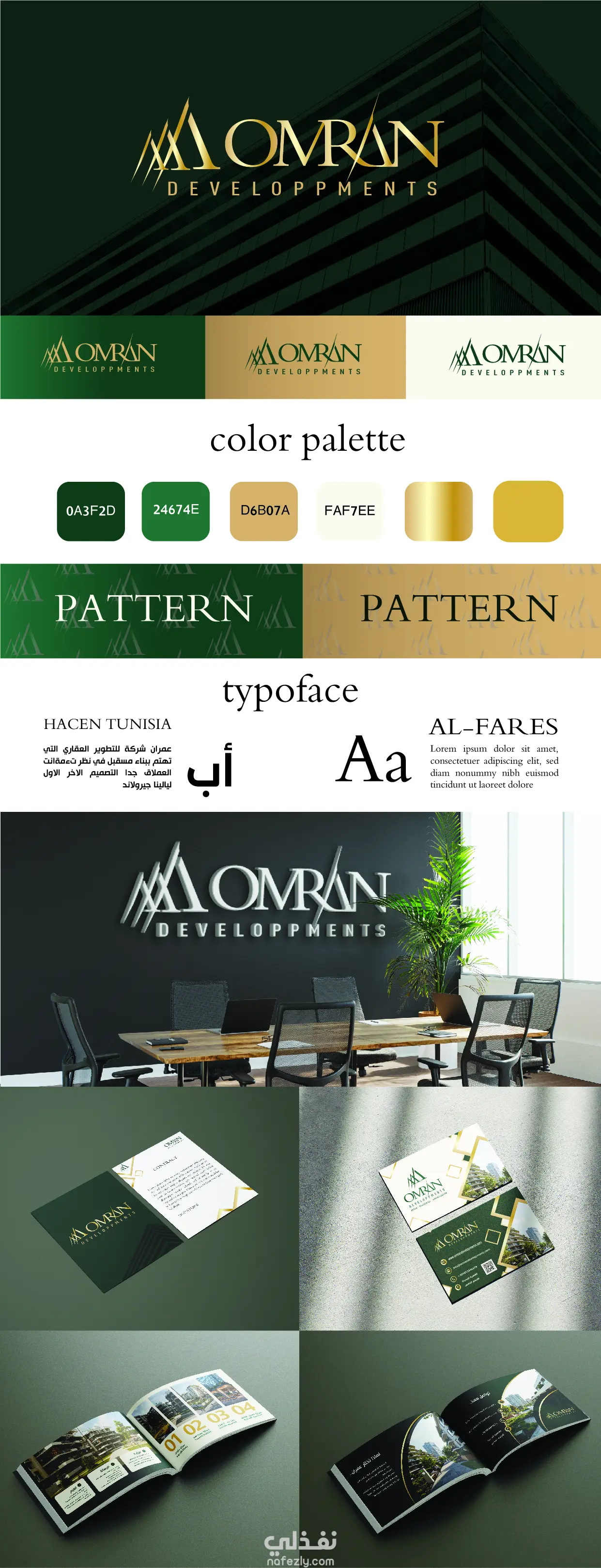 تم تكليفي بتصميم هوية بصرية متكاملة لشركة عمران للتطوير العقاري، تعكس قوة الشركة في مجال الاستثمار العقاري وفخامة مشروعاتها التي تمزج بين العراقة المصرية والطابع العصري الحديث.