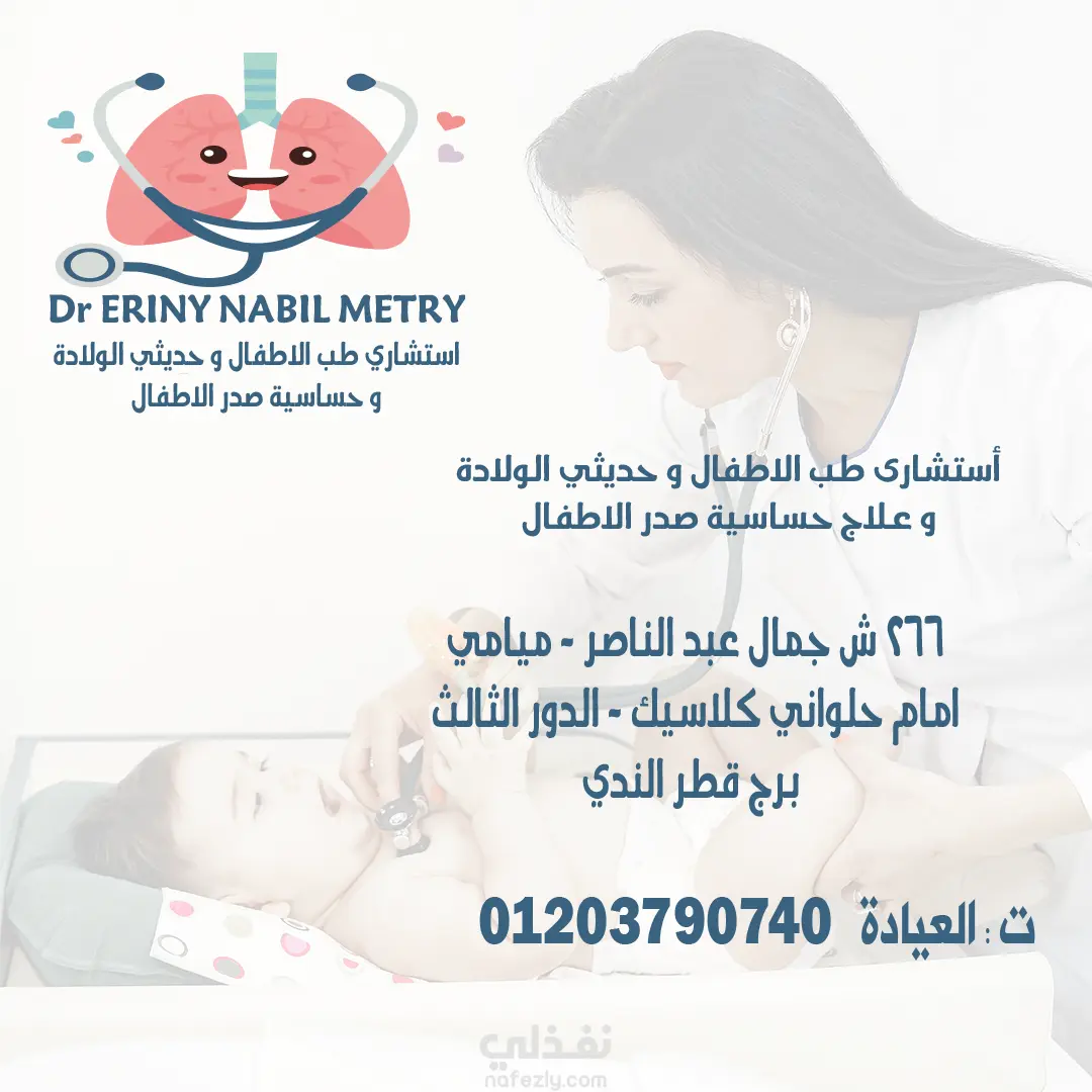 اللوجو مصمم ليعبّر بشكل واضح ولطيف عن تخصص الطبيبة في طب الأطفال – تخصص الصدر والجهاز التنفسي، مع الحفاظ على طابع ودود يناسب تعاملها مع الأطفال.