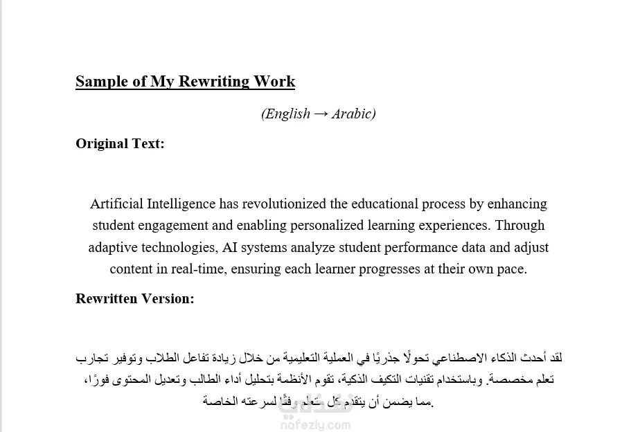 إذا كنت تبحث عن محتوى عربي أو إنجليزي جذّاب، منسق، وسهل القراءة — فأنت في المكان الصحيح. أقدم خدمة كتابة المقالات أو إعادة صياغتها بأسلوب احترافي خالٍ من الأخطاء اللغوية، مع التركيز على الوضوح والجاذبية. يمكنني كتابة مقالات في مجالات التقنية، التعليم، التسويق، أو المواضيع العامة. أضمن لك محتوى فريد بنسبة 100%، منسق وجاهز للنشر.