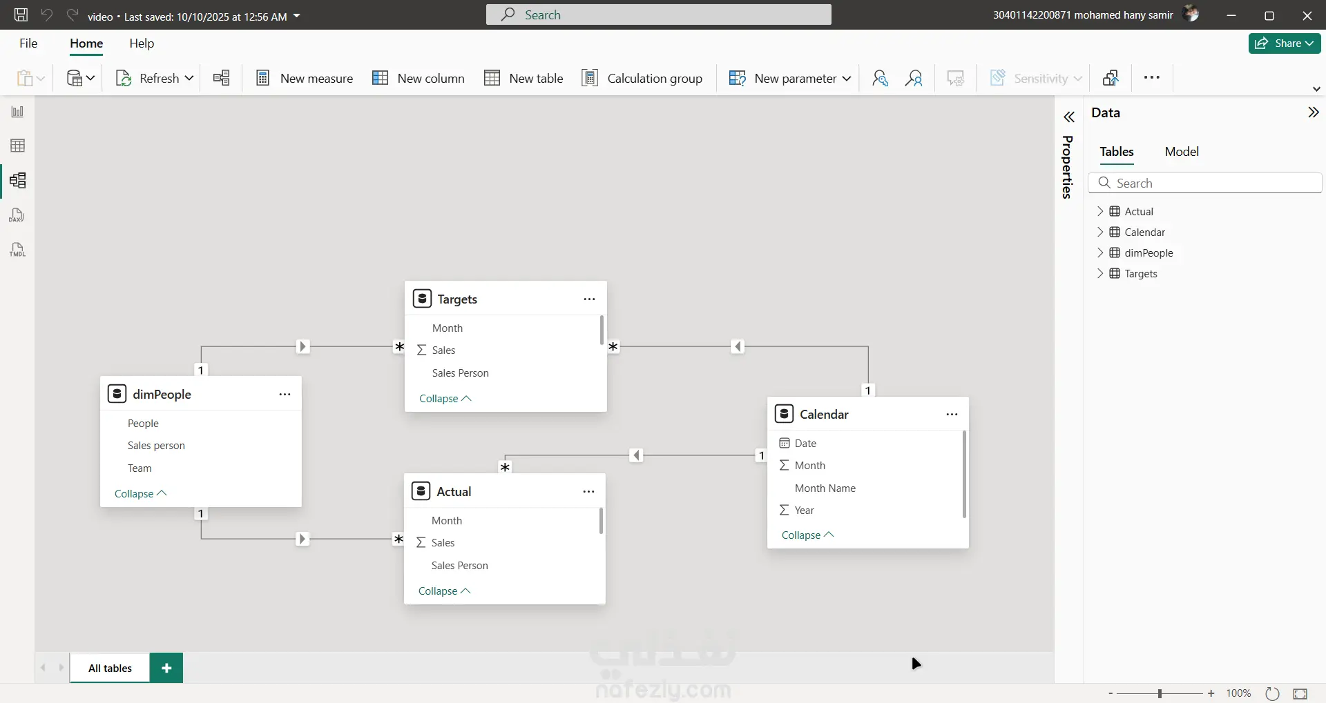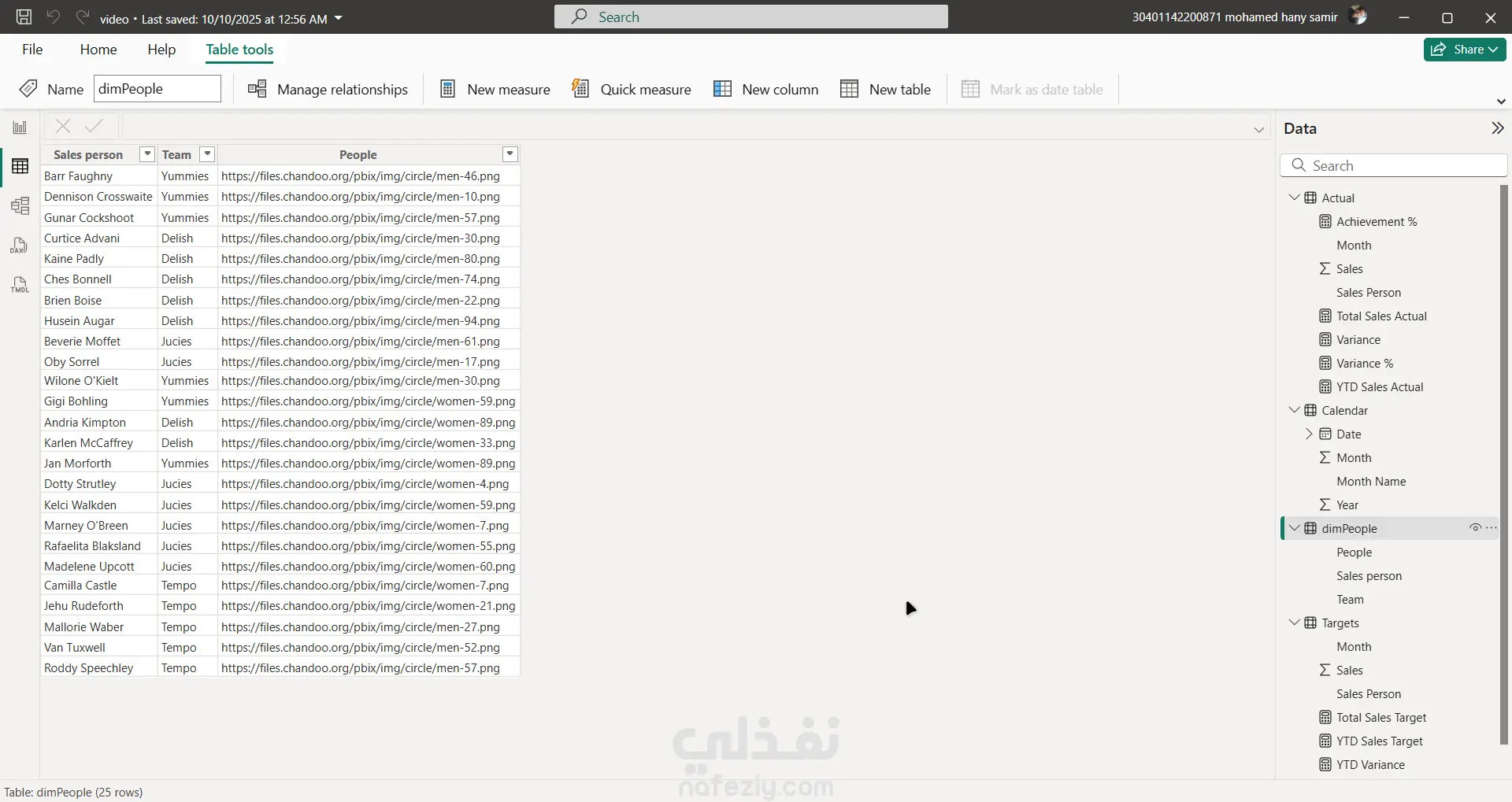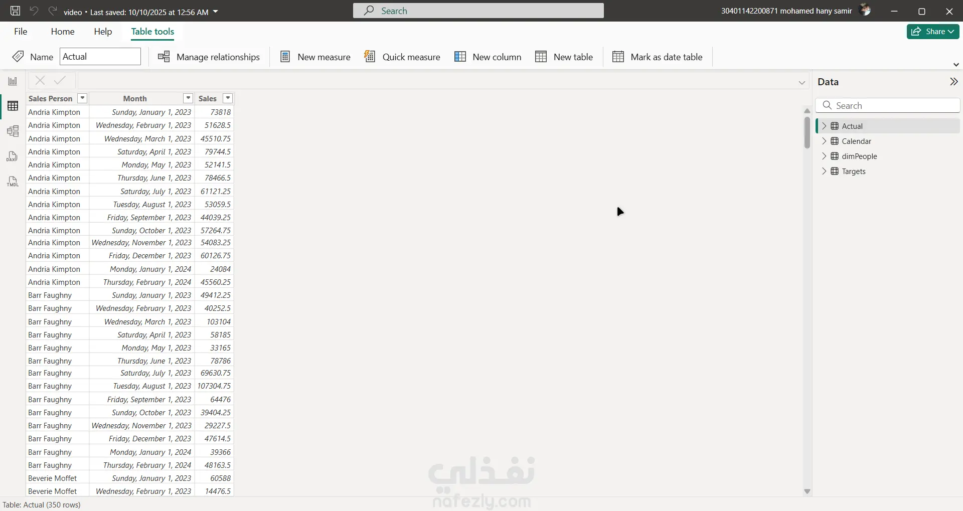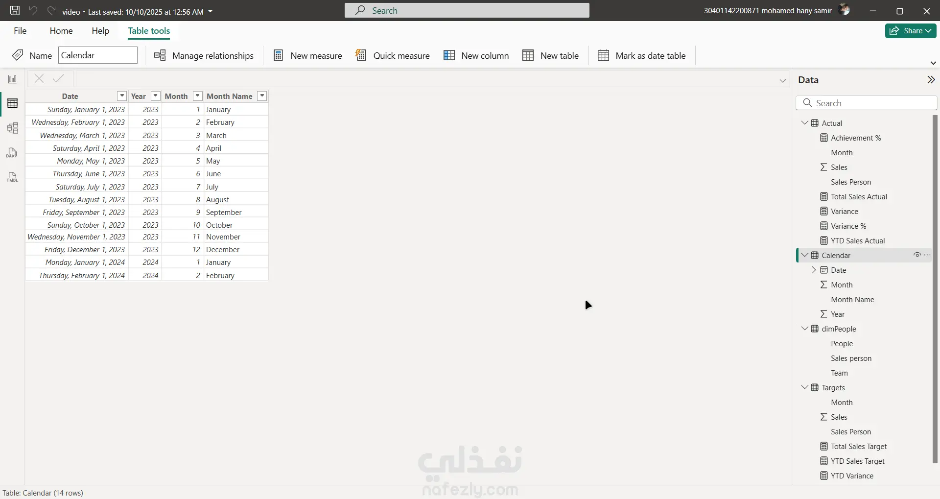 هذا المشروع ساعدني على استكشاف وتحليل عملية تحليل البيانات بالكامل، بدايةً من البيانات الخام وصولًا إلى استخراج الرؤى وتصميم لوحات المعلومات التفاعلية. الخطوات التي اتبعتها: 1- تجهيز وتنظيف البيانات: تم توصيل البيانات وتنظيفها باستخدام Power Query لضمان دقة التحليل. 2- نمذجة البيانات (Data Modelling): إنشاء العلاقات بين الجداول لبناء نموذج بيانات قوي ومنظم. 3- العمليات الحسابية (DAX): استخدام دوال DAX لحساب مؤشرات الأداء الرئيسية (KPIs) مثل نسبة الانحراف، معدل الإنجاز، ومبيعات السنة حتى تاريخه (YTD Sales). 4- تصميم لوحة التحكم: تصميم لوحة معلومات تفاعلية وجذّابة تعرض المؤشرات بطريقة واضحة وسهلة الفهم. أهم المؤشرات والرؤى التي يعرضها الداشبورد: إجمالي المبيعات الفعلية مقابل المستهدفة. الأداء الشهري وأداء كل فريق. معدل الإنجاز ونسبة الانحراف بين الهدف والنتيجة. هذا المشروع كان تجربة تعليمية رائعة ساعدتني على تطوير مهاراتي في Power BI وتحليل البيانات، وأنا متحمس لتنفيذ المزيد من المشاريع المماثلة وتطوير قدراتي في تصميم لوحات تحكم احترافية