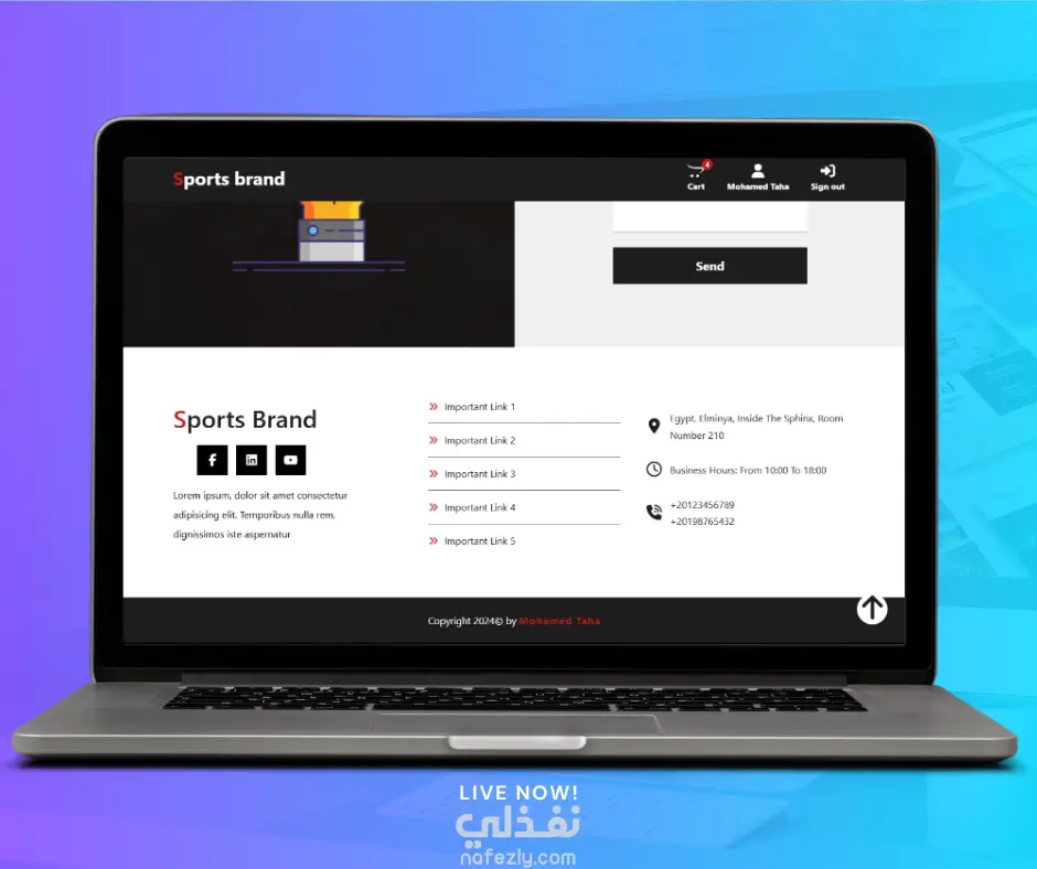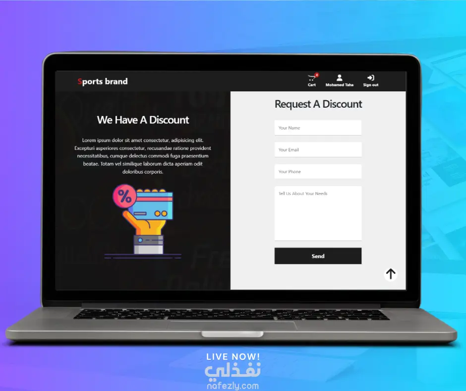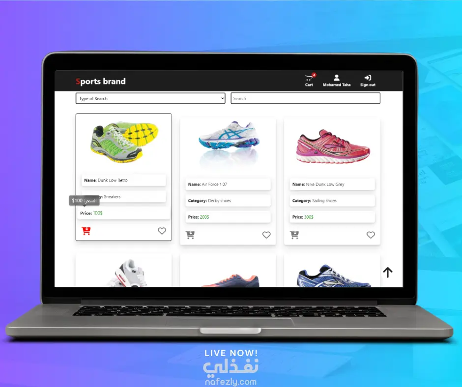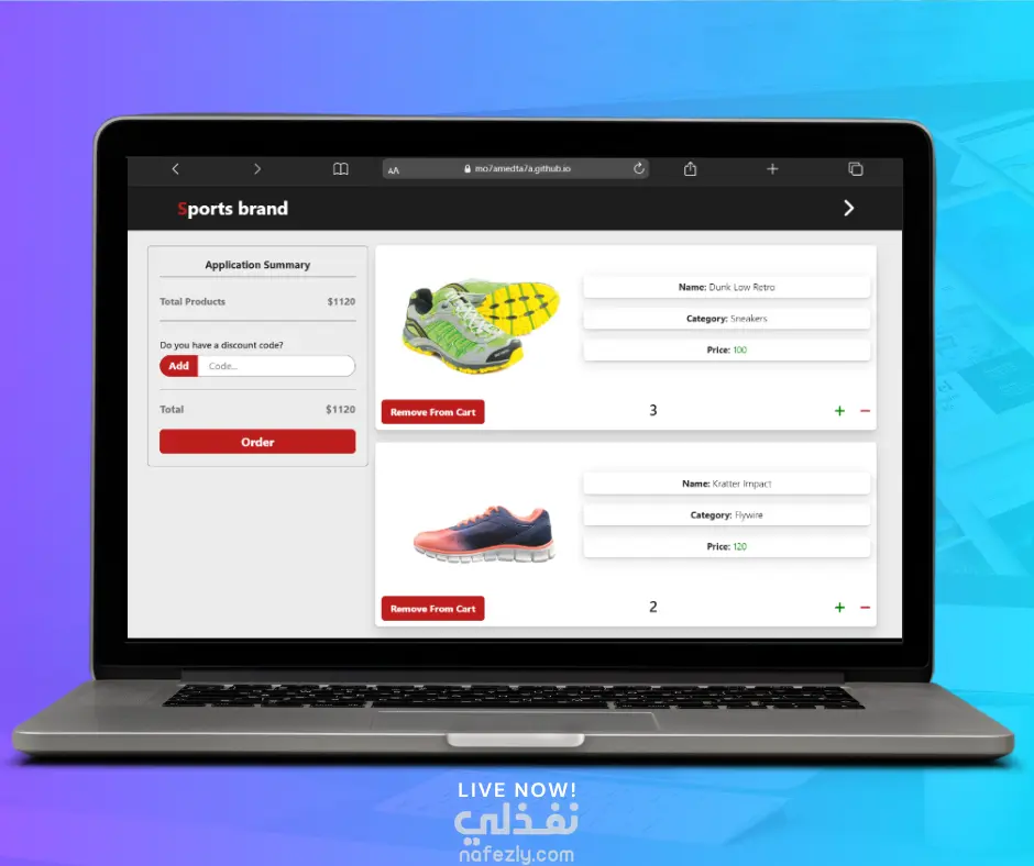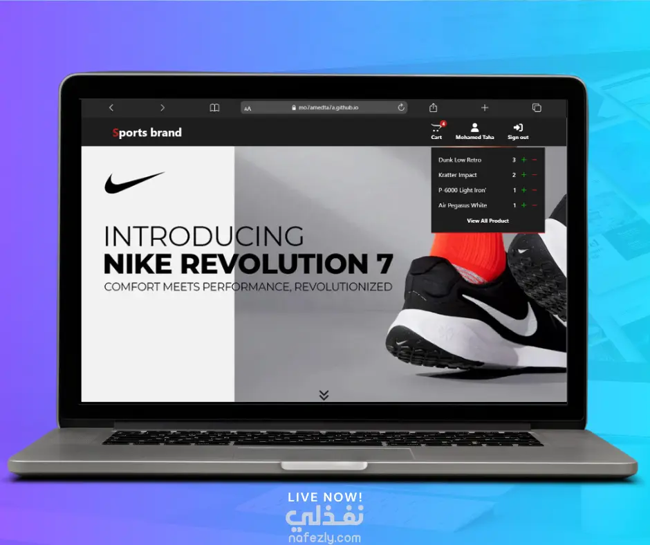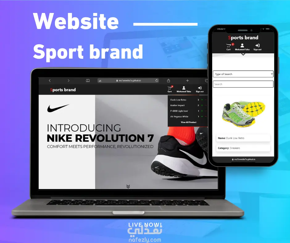 موقع رياضي احترافي بتصميم عصري مخصص لبيع الأحذية الرياضية، مع تجربة مستخدم سهلة وسريعة.