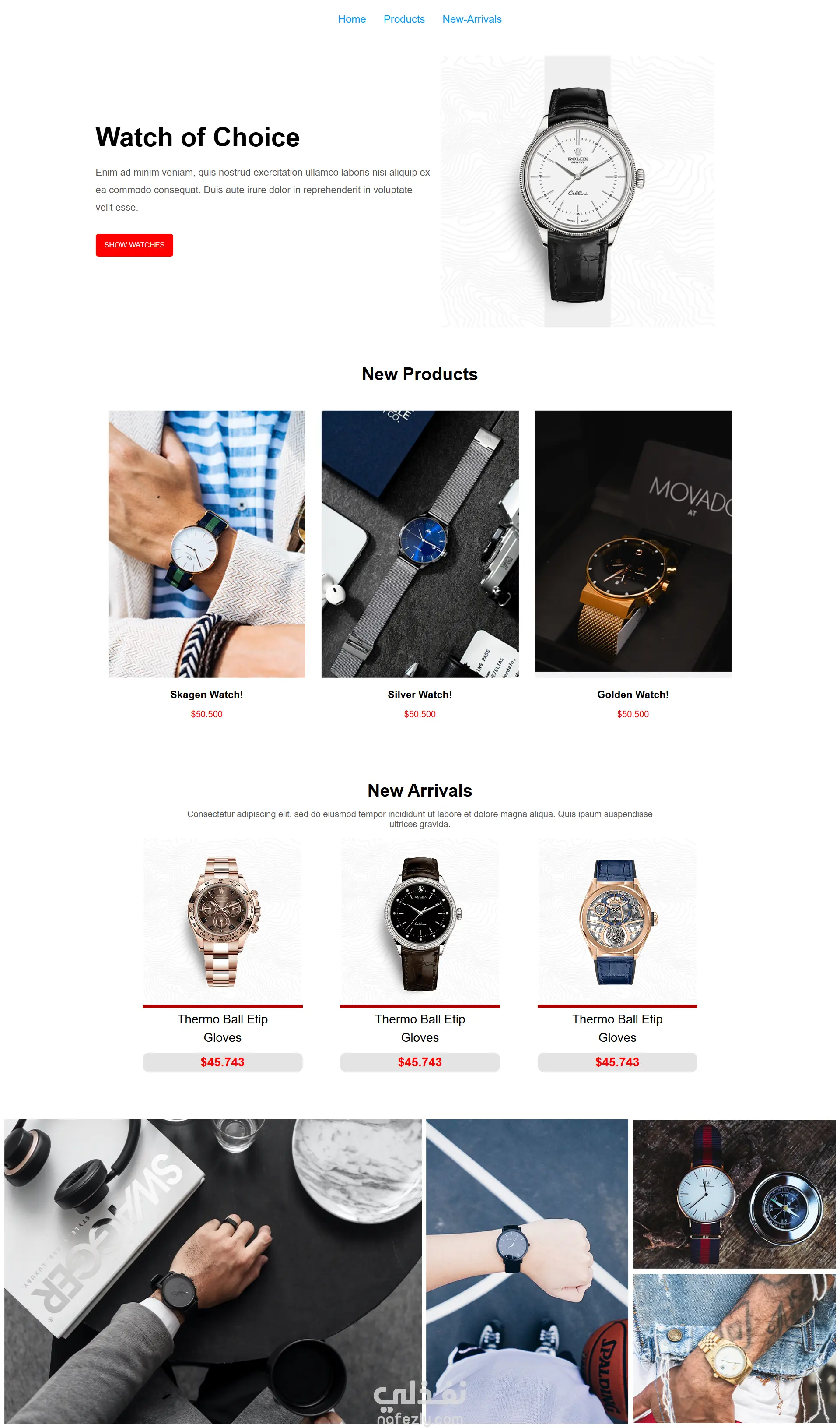 قمتُ بتصميم وتطوير واجهة متجر إلكتروني عصرية ومتجاوبة متخصصة في عرض الساعات الفاخرة بشكل أنيق واحترافي.