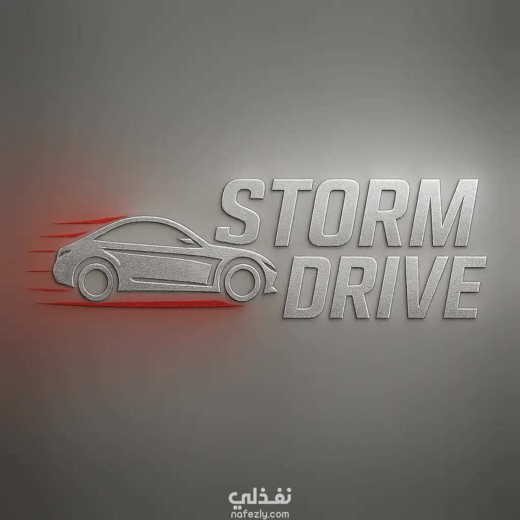 لوجو سيارات سبورت storm Drive بتصميم معدني احترافي فخم