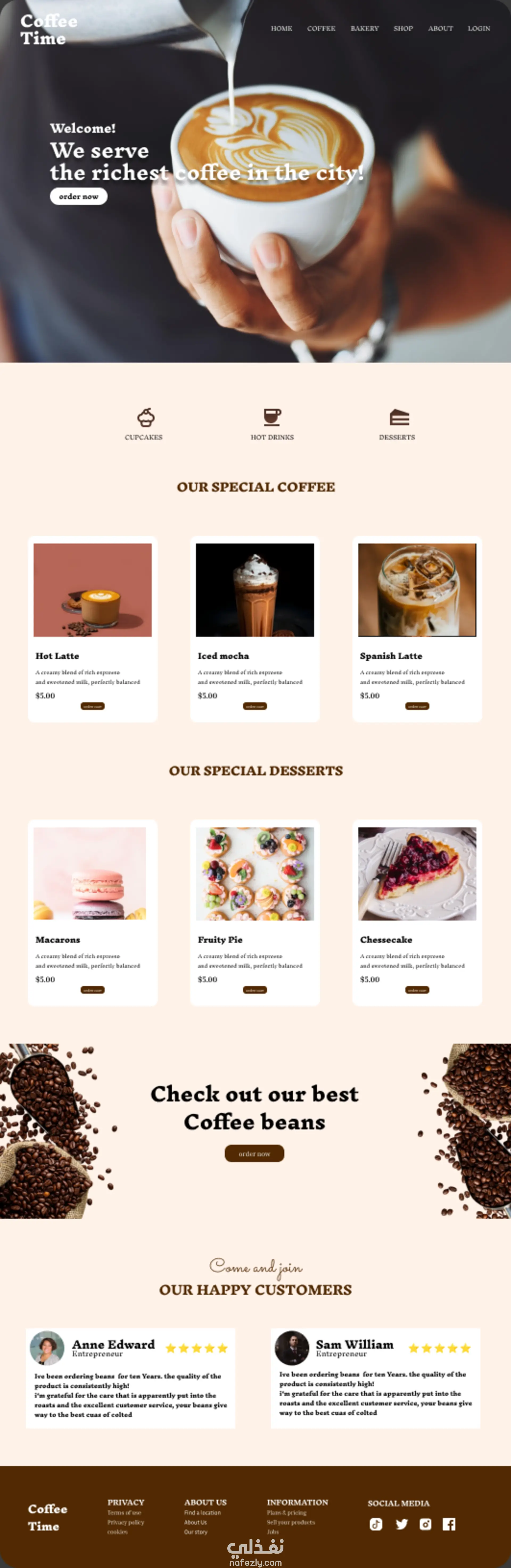 واجهة جذابة تحفز المستخدم على الطلب وتبرز هوية المقهى بطريقة راقية وبصرية مريحة.