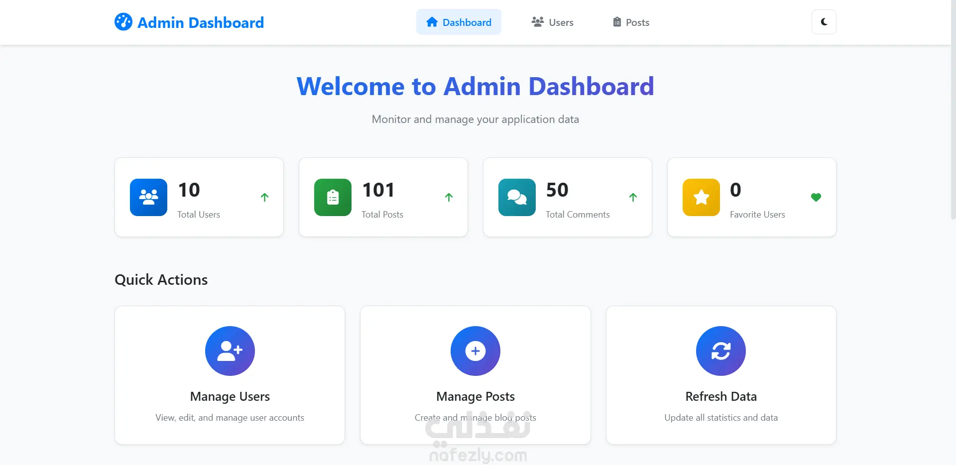 قمت بتصميم وتطوير لوحة تحكم (Admin Dashboard) احترافية لإدارة بيانات الموقع والمستخدمين بسهولة وفعالية.