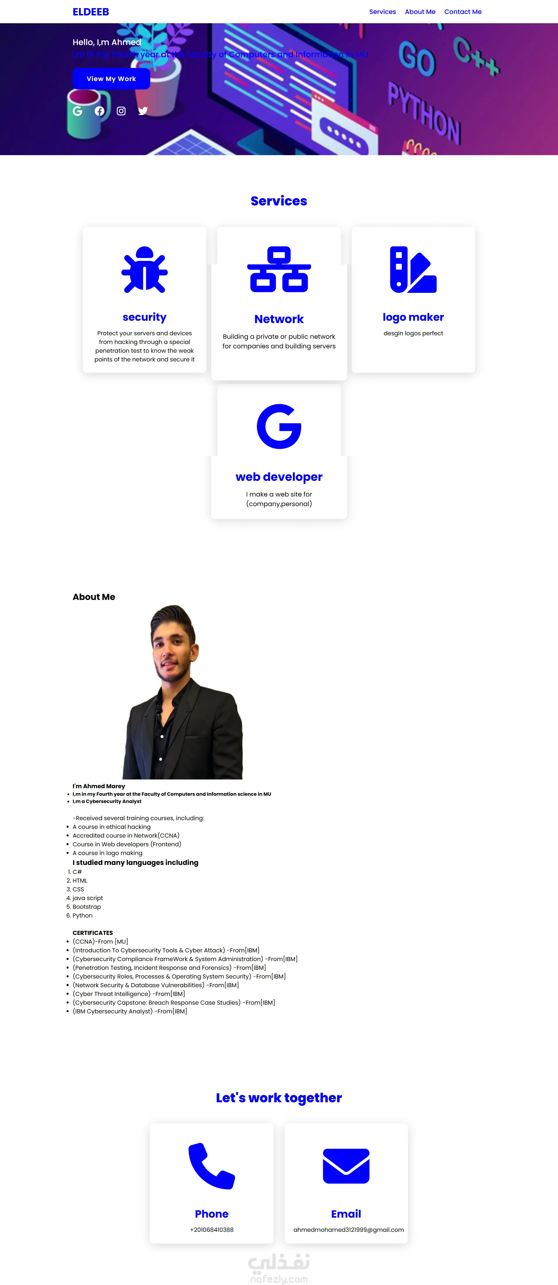 تصميم وتطوير موقع بورتفوليو شخصى او صفحة هبوط Landing Page