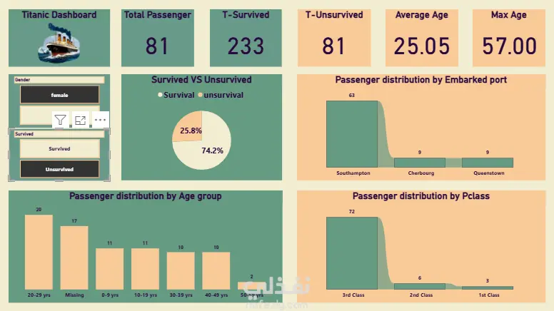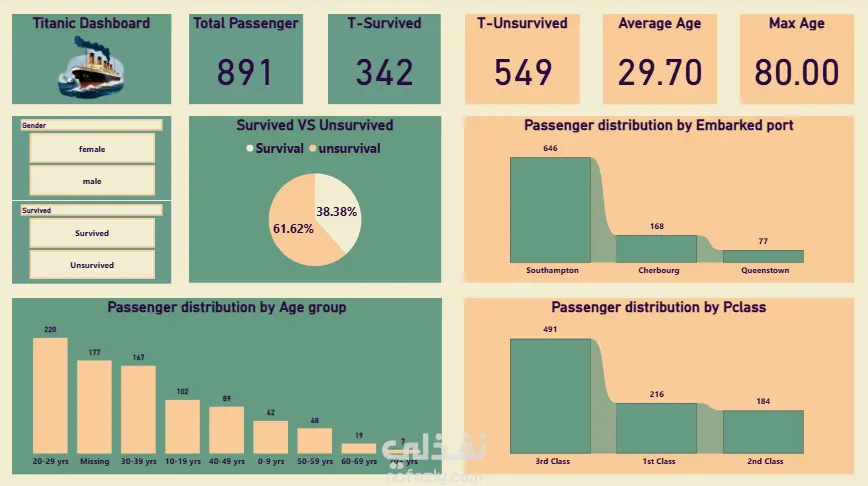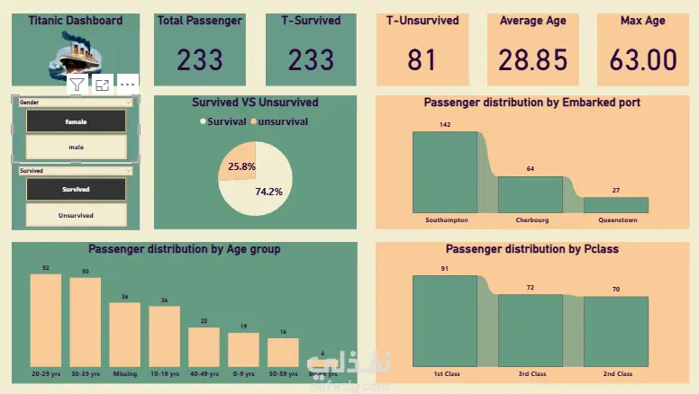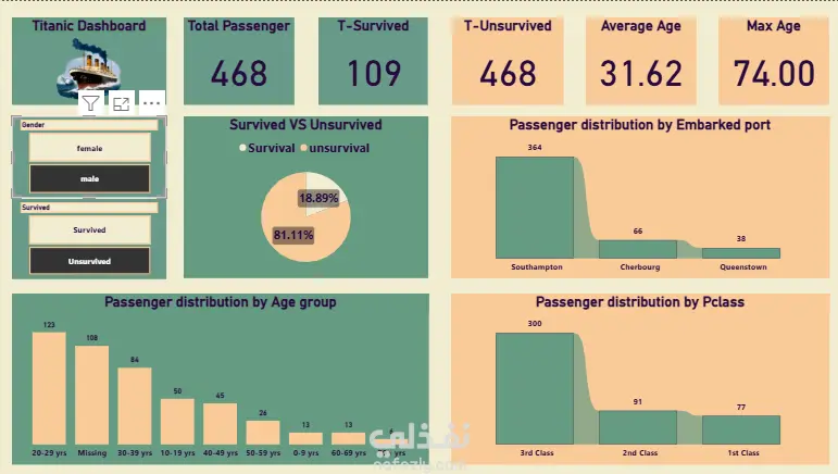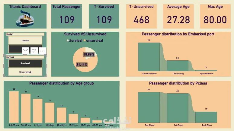 تصميم لوحة تحكم تفاعلية ا Power BI لعرضها وتحليلها TITANIC