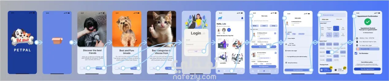 تطبيق PETPAL بيجمعلك كل حاجة تخص حيوانك الأليف في مكان واحد! تقدر من خلاله تتابع التطعيمات، مواعيد الدكتور، الأكل، التمرين، والجمال. وكمان تلاقي خدمات قريبة زي العيادات أو محلات الحيوانات.
