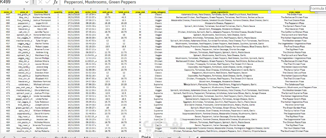 📊 مشروع: تصميم لوحة تحكم تفاعلية لتحليل مبيعات محل بيتزا باستخدام Excel (Power Query & Power Pivot)
