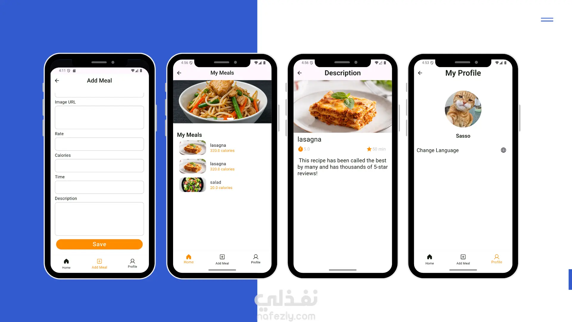 تطبيق Meals App بواجهة متجاوبة ودعم تعدد اللغات