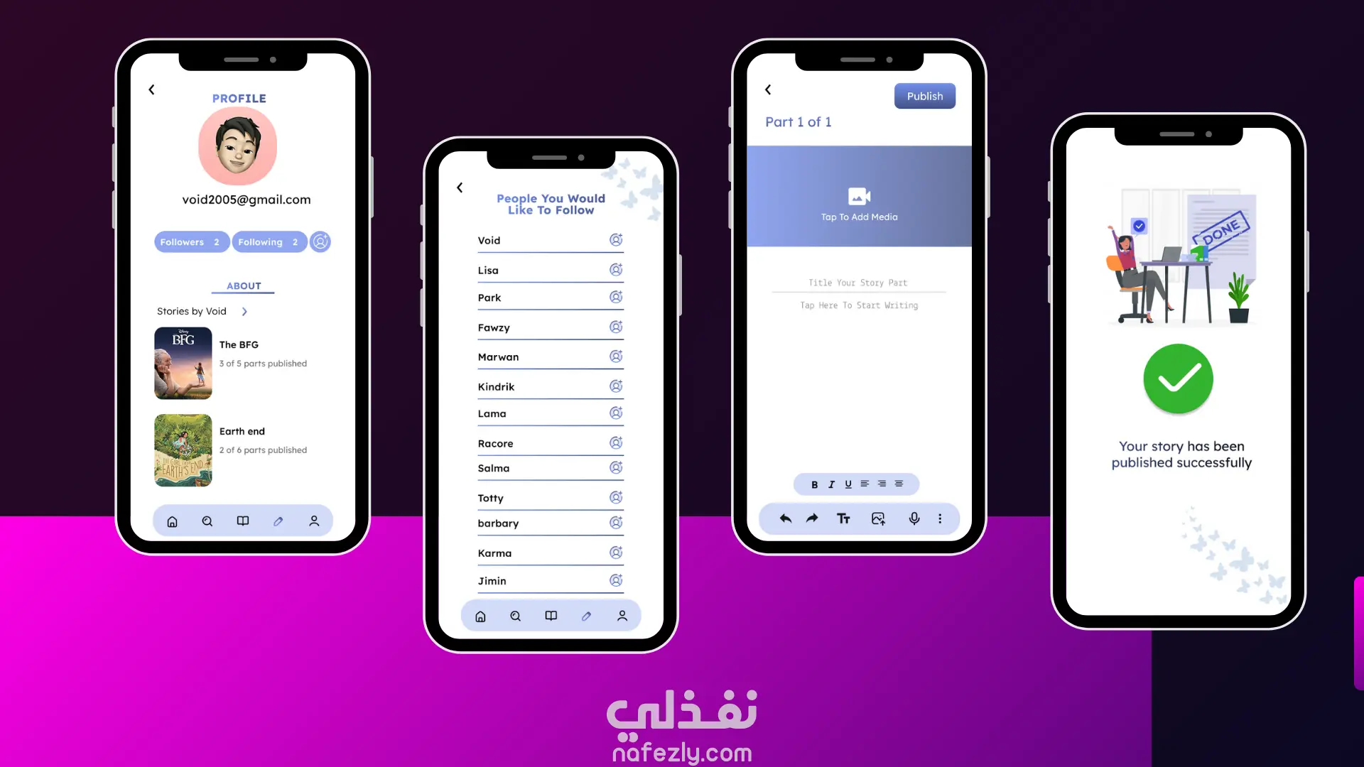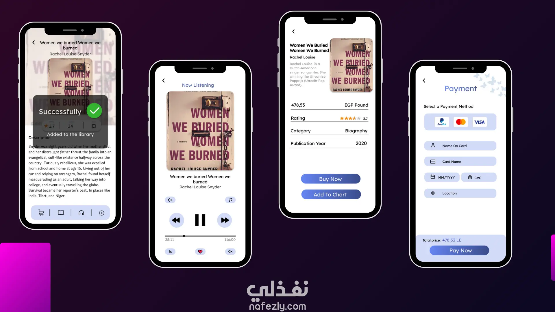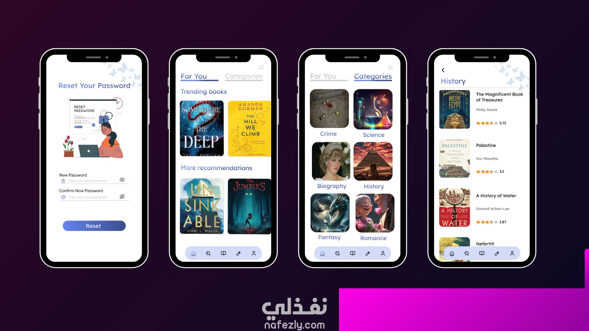 "Bookie" هو تطبيق شامل لعشاق القراءة والاستماع، بيجمع بين المكتبة الرقمية والكوميونتي التفاعلي للكتّاب. المستخدم يقدر يقرأ الكتب الإلكترونية، يستمع للكتب الصوتية، يشتري كتبه المفضلة، وكمان يتواصل مع الكتّاب الهواة والمحترفين اللي بينشروا قصصهم مباشرة على المنصة. المميزات الأساسية: قراءة كتب إلكترونية بتجربة مريحة (تغيير الخط،الحجم، الاضاءة). الاستماع للكتب الصوتية بجودة عالية مع التحكم في سرعة القراءة. متجر مدمج لشراء الكتب بسهولة وسرعة. مجتمع للكتّاب (Community) يسمح لهم بنشر قصصهم، والحصول على تقييمات وتعليقات من القرّاء. بحث متقدم وتصنيف الكتب حسب النوع (روايات، تطوير ذاتي، أطفال...). ️ إنشاء مكتبة شخصية (My Library) وحفظ الكتب المفضلة.