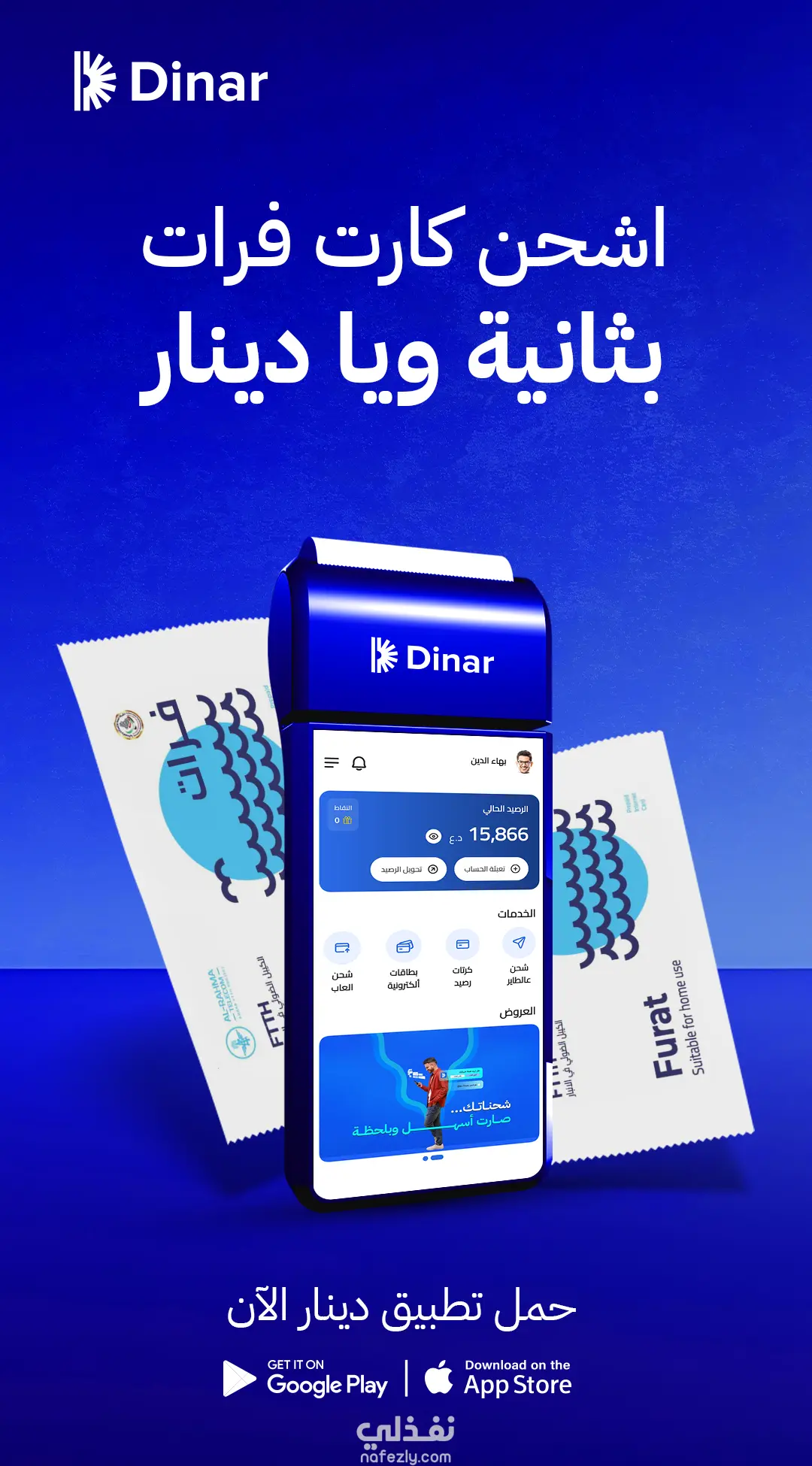 تطبيق دينار هو تطبيق عراقي يقدم خدمات مختلفة مثل شحن الالعاب و شحن كروت الرصيد و غيرها من الخدمات