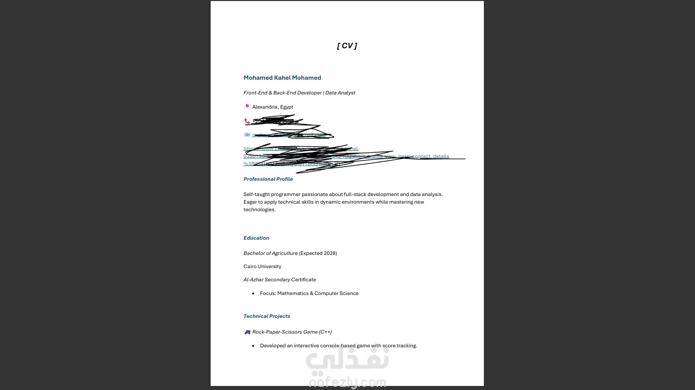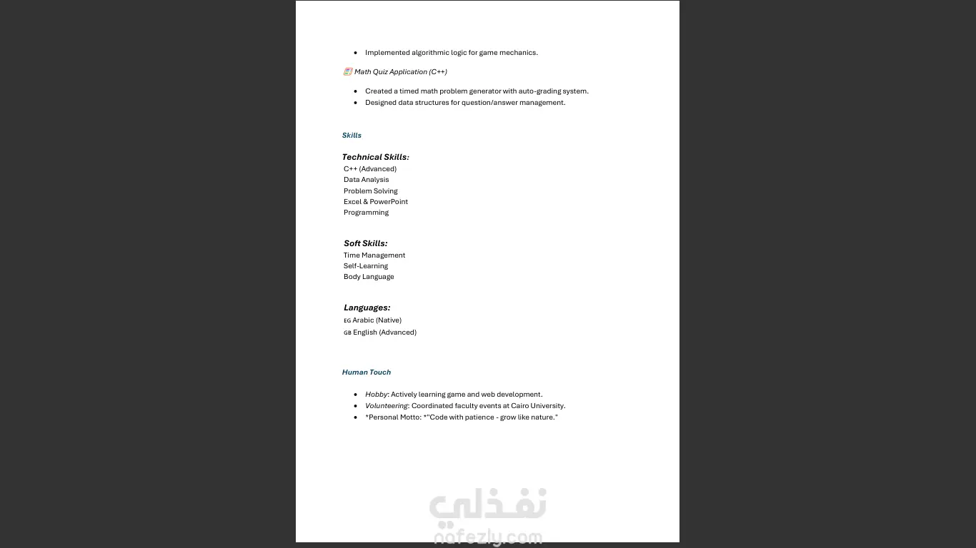 *سيره ذاتيه احترافيه باللغه العربيه او الانجليزيه