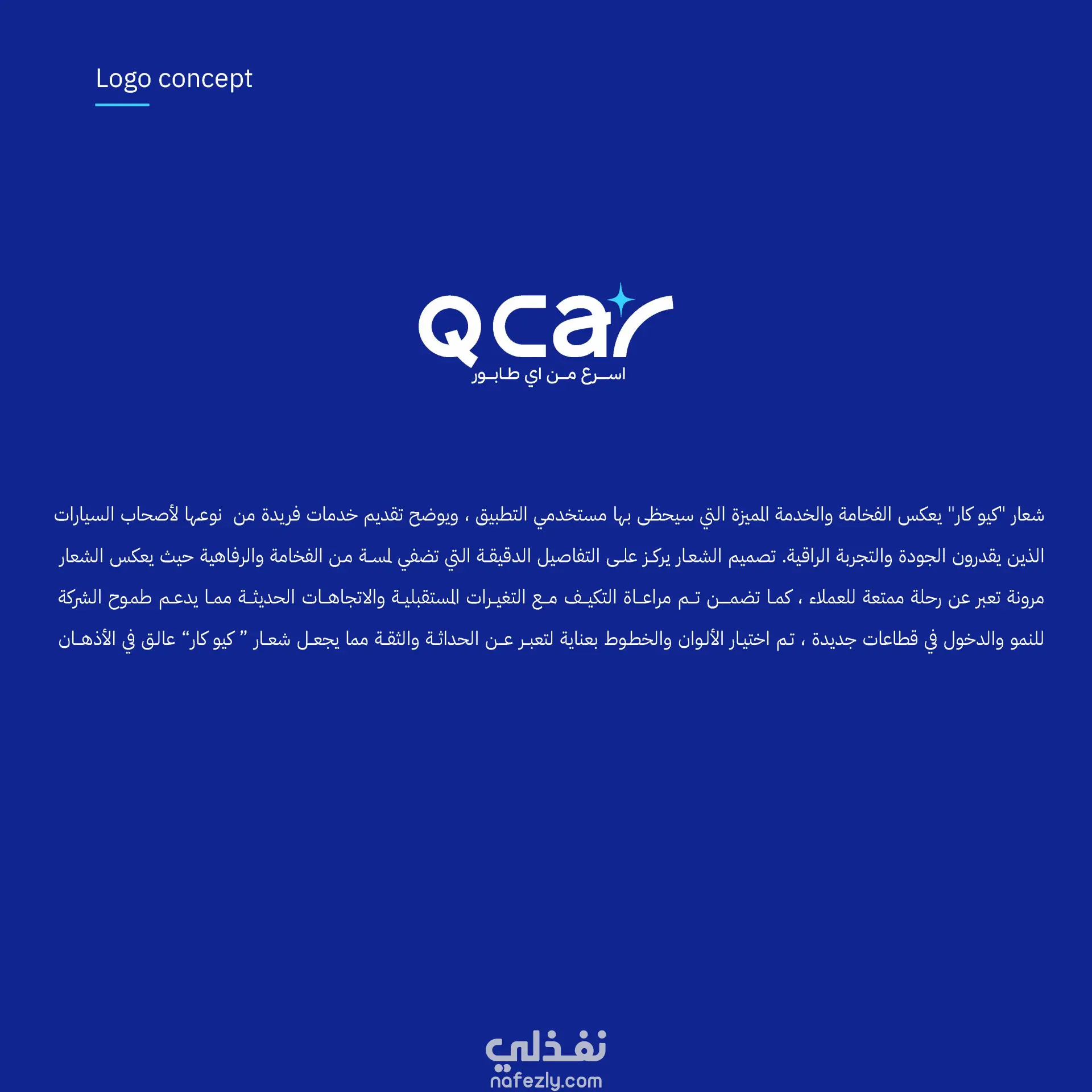 تصميمQ Car هي علامة تجارية متخصصة في خدمات السيارات، تتميز بالسرعة والاحترافية في تقديم الحلول لعملائها، بشعارها الذي يعكس مفهوم الكفاءة والسرعة في الأداء من خلال هوية عصرية وواضحة المعالم. فكرة الشعار يرتكز تصميم الشعار على دمج الحرف Q مع كلمة car في تكوين انسيابي يعبر عن الحركة والسرعة والانطلاق. يظهر الحرف R بانحناءة ديناميكية توحي بالمسار أو الطريق، بينما تضيف النجمة الصغيرة أعلى الحرف A لمسة بصرية تدل على النظافة، اللمعان، والجودة العالية. الألوان تم استخدام درجات الأزرق كلون رئيسي، لما يرمز إليه من الثقة، الاحترافية، والموثوقية، مع لمسة سماوية فاتحة تضيف الإحساس بالانتعاش والتقنية الحديثة. هذه الألوان تمنح العلامة حضورًا مميزًا في بيئة المنافسة وتسهّل تمييزها بصريًا. الهوية البصرية تعتمد الهوية البصرية لشركة Q Car على البساطة العصرية، والخطوط النظيفة، والمساحات البيضاء التي تتيح تنفس العناصر البصرية. الهوية مصممة لتعمل بسلاسة عبر جميع الاستخدامات: من الإعلانات الرقمية وتطبيقات الهاتف، إلى واجهات الفروع والمطبوعات. الانطباع العام تعكس هوية Q Car مفهوم السرعة بدون طوابير كما يشير الشعار الفرعي “أسرع من أي طابور”، لتقدم تجربة بصرية متكاملة توصل رسالة العلامة بثقة ووضوح.