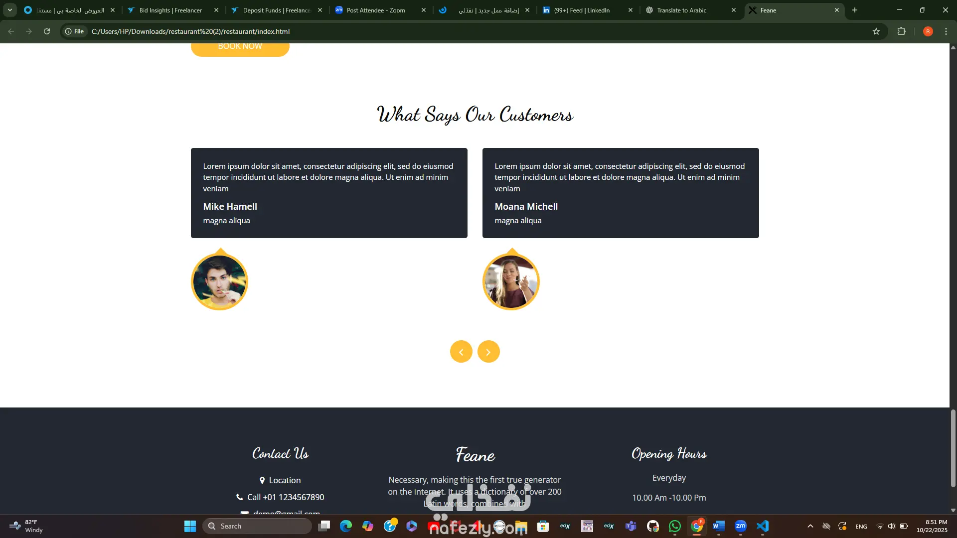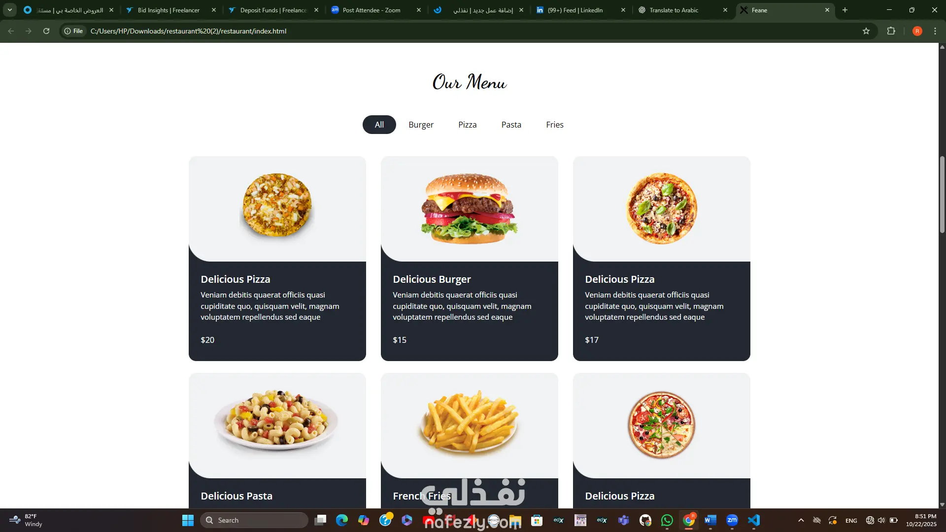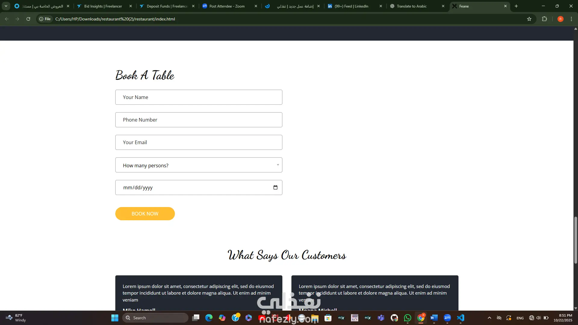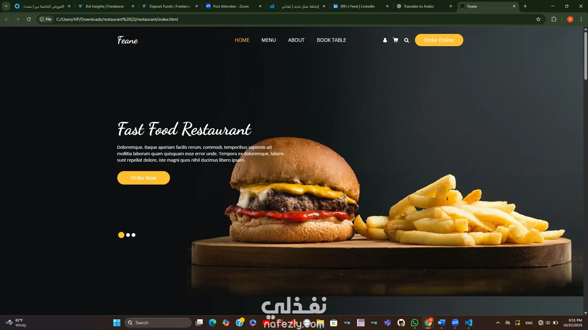 انشاء موقع مطعم باستخدام HML, CSS, JS