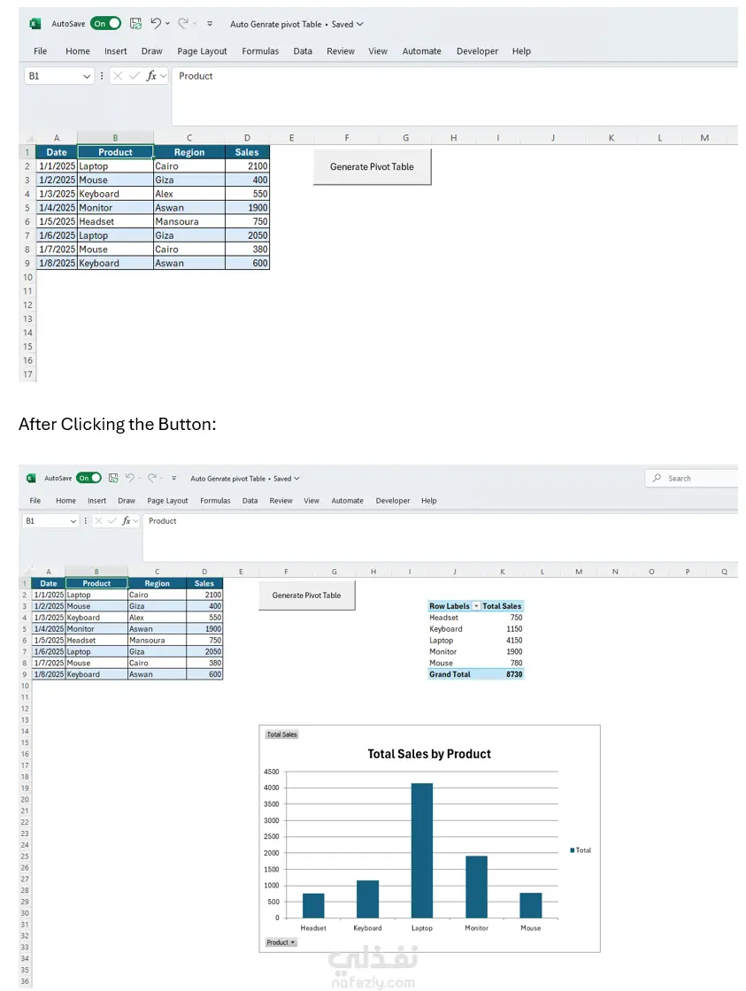 مشروع أتمتة تقارير المبيعات – Excel