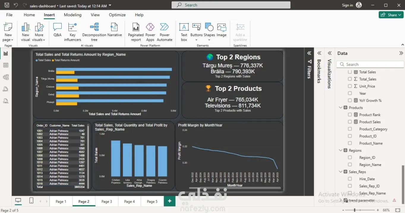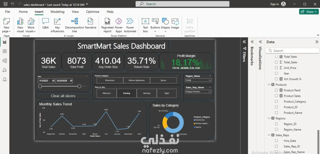 هذا المشروع ساهم في تعزيز مهاراتي في تحليل الأداء التجاري، وعمّق معرفتي في تحليلات Power BI وتصميم لوحات المعلومات التفاعلية (Dashboards).