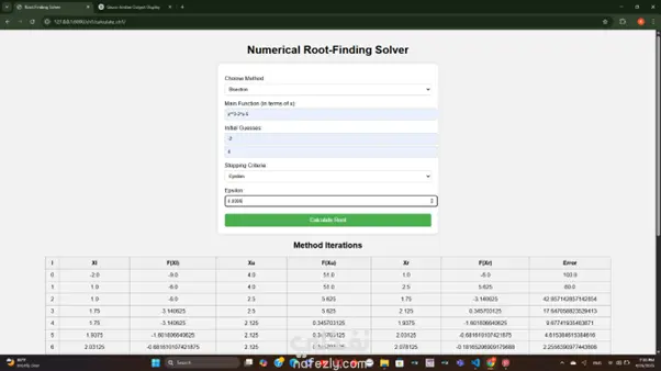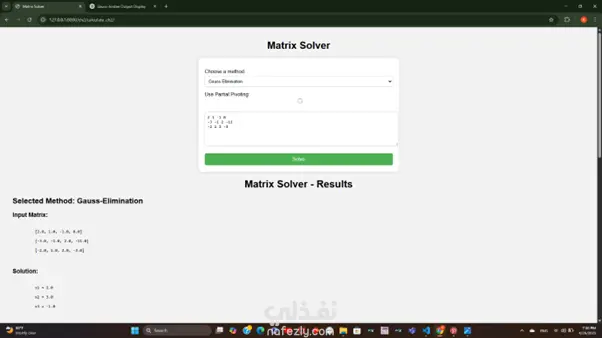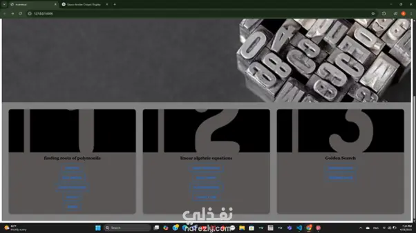 هذا الموقع يبيح للمستخدمين حساب نتا~ج المعادلات الغير خطية مثل: • Bisection Method • False Position (Regula Falsi) Method • Fixed Point Iteration • Newton-Raphson Method • Secant Method او المصفوفات والمحددات بطرق مختلفة: Gauss-Jordan Gauss-elimination LU decomposition Cramer partial pivoting متاح كما يساعد في حل golden search equation لايجاد اعل واقل قيمة
