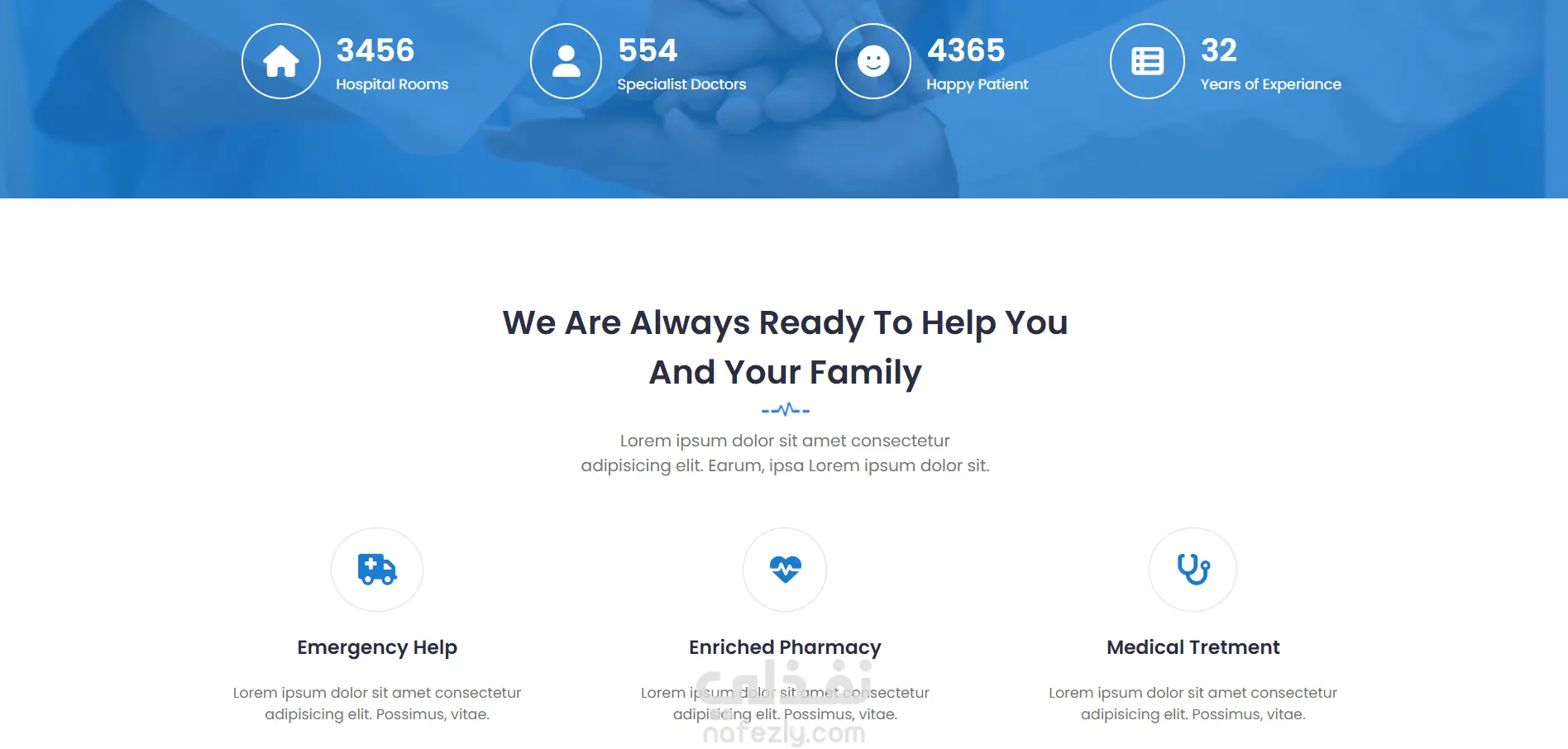 تركّز الصفحة على تقديم واجهة حديثة وتجربة مستخدم مريحة تشجع الزوار على حجز المواعيد أو التواصل مع المستشفى بسهولة.