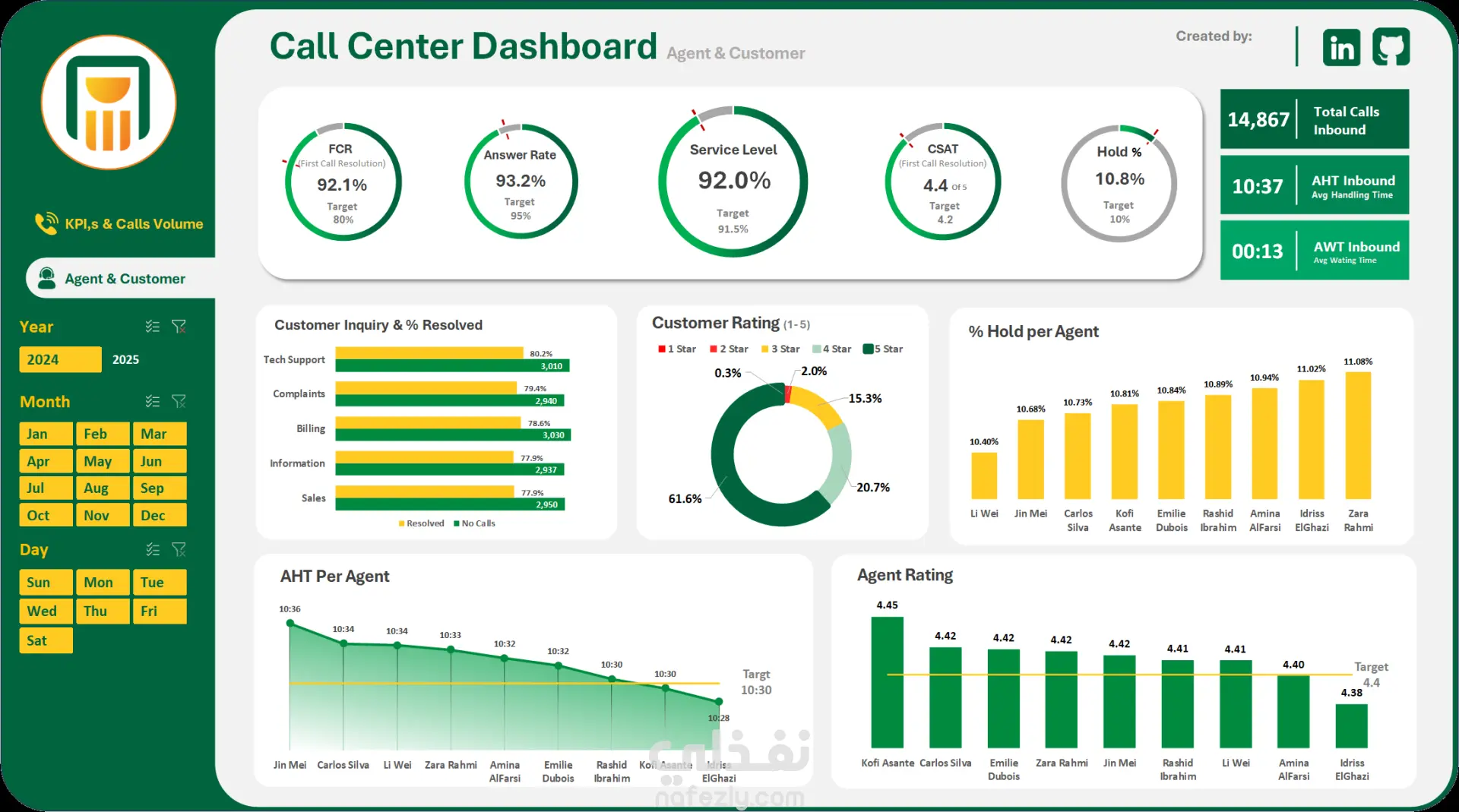 وصف المشروع: تحول جميع البيانات الى داشبورد تفاعلي لبيانات الاداء مقارنة بالتارجت المطلوب ومتابعة رضاء العملاء واداء الموظفين باستخدام برنامج ال Excel فقط وايضا يمكن باستخدام برنامج Power BI في حال الطلب. محتوى اللوحة: ● تنظيف وتحضير البيانات (Data Cleaning & Preprocessing) لضمان دقة النتائج. ● تحليل البيانات وإنشاء لوحات تحكم تفاعلية باستخدام (Excel). ● تحديد التارجت ومقارنتة بالاداء الحالي. ● مقارنة بين فترات الوقت المحددة. ● اضافة فلاتر تفاعلية. الأدوات المستخدمة: Excel فقط الهدف من العمل: تسهيل فهم وتفسير البيانات الديموغرافية. دعم متخذي القرار في معرفة العلاقة بين التعليم والمهنة والعمر والجنس. عرض النتائج بشكل بصري تفاعلي وواضح.