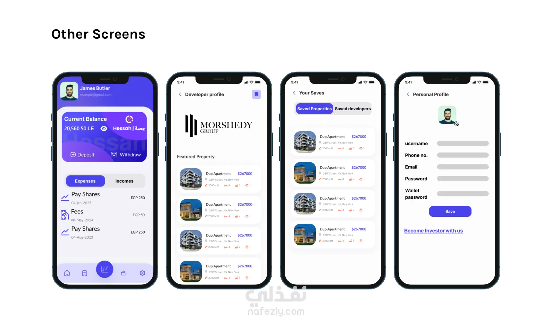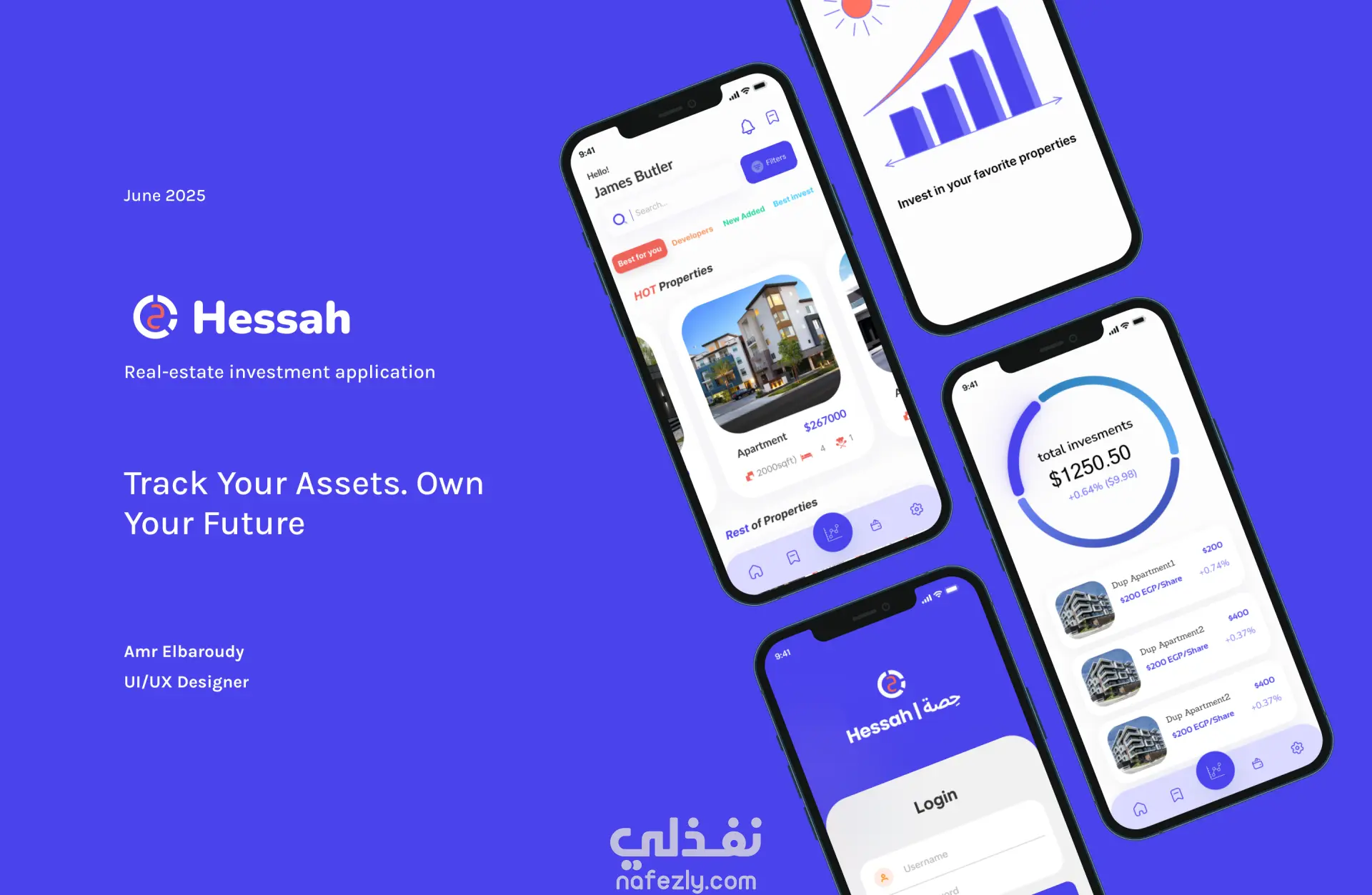 Hessah: بوابتك للاستثمار العقاري بالحصص تطبيق Hessah هو منصة متنقلة عصرية مصممة لإضفاء الطابع الديمقراطي على الاستثمار العقاري. يتيح التطبيق للمستخدمين الاستثمار في عقارات عالية القيمة عن طريق شراء حصص جزئية، مما يجعل ملكية العقارات في متناول شريحة أوسع من المستثمرين. يجمع التطبيق بين واجهة مستخدم نظيفة وسهلة الاستخدام مع ميزات قوية لتوفير تجربة استثمار سلسة وشفافة. الميزات الرئيسية: الاستثمار بالحصص: يمكنك شراء حصص من عقارات مختارة مسبقًا، بدءًا من مبالغ صغيرة. لوحة تحكم بديهية: توفر لوحة التحكم المصممة بشكل جذاب نظرة عامة سريعة على إجمالي استثماراتك، بما في ذلك مقاييس الأداء وتوزيع المحفظة. معاملات آمنة: يمكنك إيداع وسحب الأموال بسهولة مع سجل معاملات آمن وشفاف. تسجيل دخول مبسط: عملية التسجيل سهلة، وتوفر خيارات تسجيل الدخول باستخدام البريد الإلكتروني أو حسابات التواصل الاجتماعي. معلومات شاملة: يضم كل إعلان عن عقار معلومات مفصلة حول قيمته، أدائه، وسعر الحصة. إدارة الحساب: يمكنك إدارة ملفك الشخصي، الإشعارات، وإعدادات الخصوصية من قائمة "الإعدادات" المخصصة. الأدوات المستخدمة في التصميم: Figma: لتصميم الواجهات وتجربة المستخدم (UI/UX). Adobe Photoshop: لمعالجة الصور والتصميمات الرسومية. Adobe Illustrator: لإنشاء الأيقونات والرسومات المتجهة.