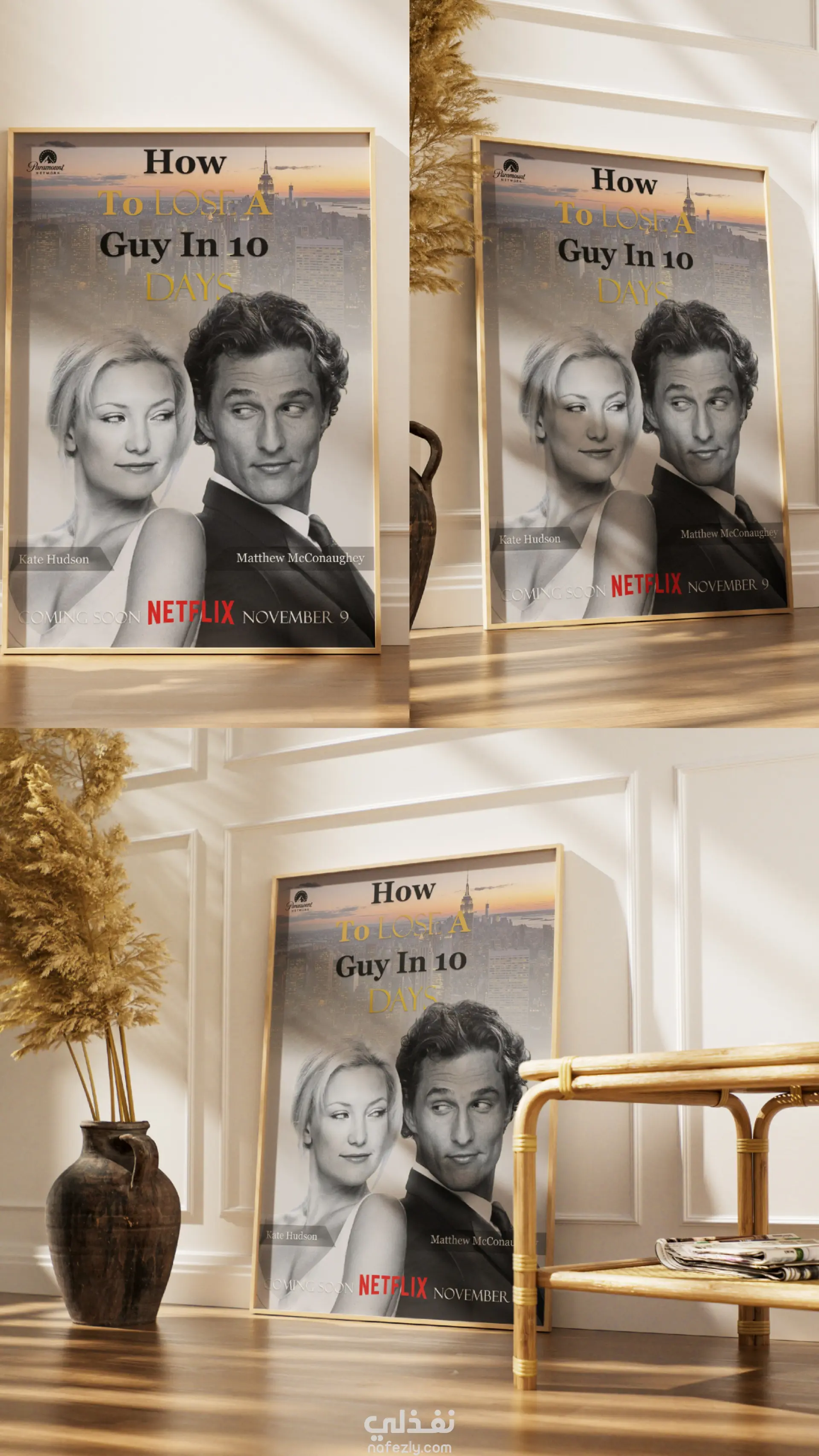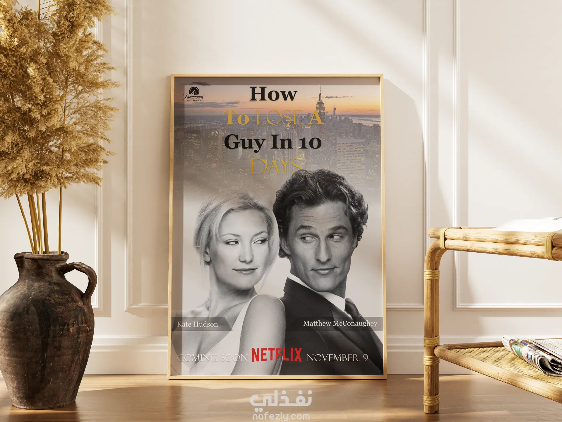 تحديث الجاذبية البصرية من حيث استخدام تباين الألوان (الأبيض والأسود للشخصيات مقابل خلفية مدينة نيويورك الملونة) لخلق مظهر أكثر عصرية وجاذبية لمنصة العرض و دمج عناصر Streaming تعديل معلومات الإصدار ليتناسب مع منصة Netflix بدلاً من العرض السينمائي التقليدي، مع إضافة شعار "Coming Soon" لإثارة الترقب. التركيز على الكيمياء وضع النجمين (Kate Hudson و Matthew McConaughey) في تكوين يعكس نظرات التحدي المتبادلة، مع الحفاظ على التوازن بين الجانب الكوميدي والرومانسي للفيلم.