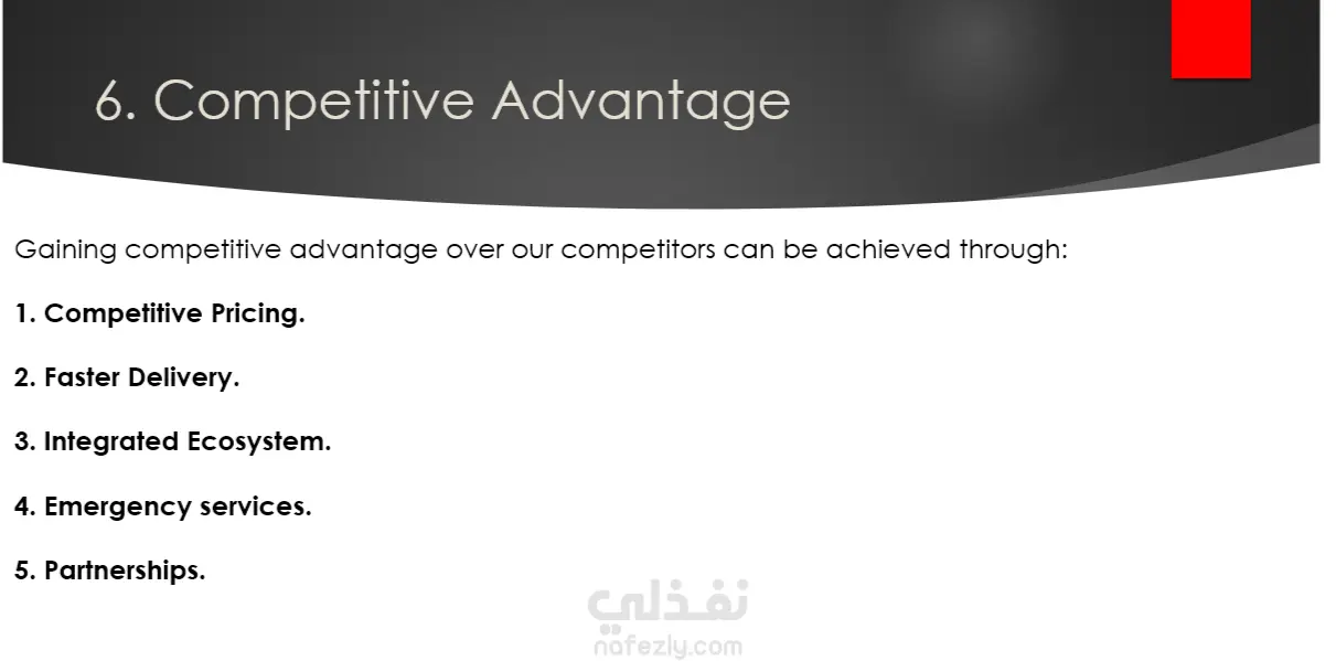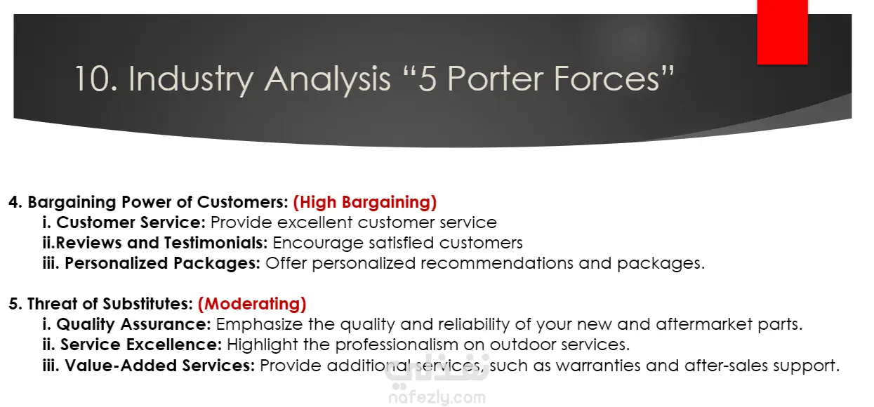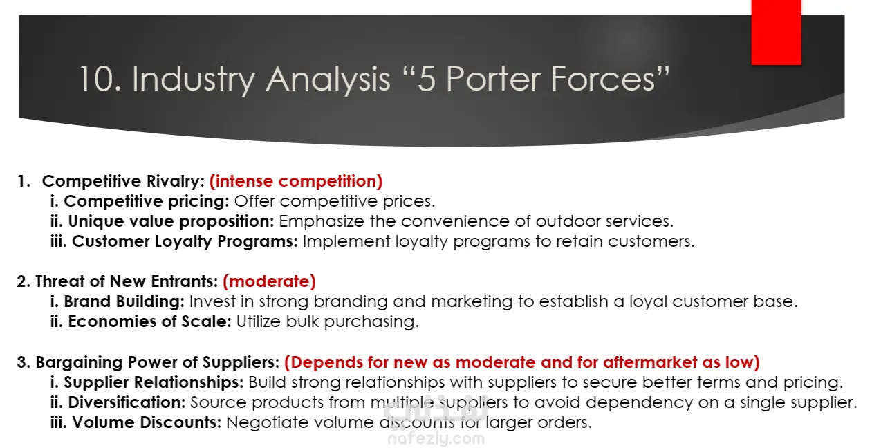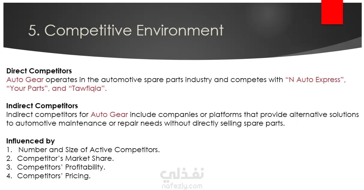 - تم تحليل البيئة التنافسية بشكل شامل ووضع استراتيجيات للتمايز والاستجابة لتحديات السوق.