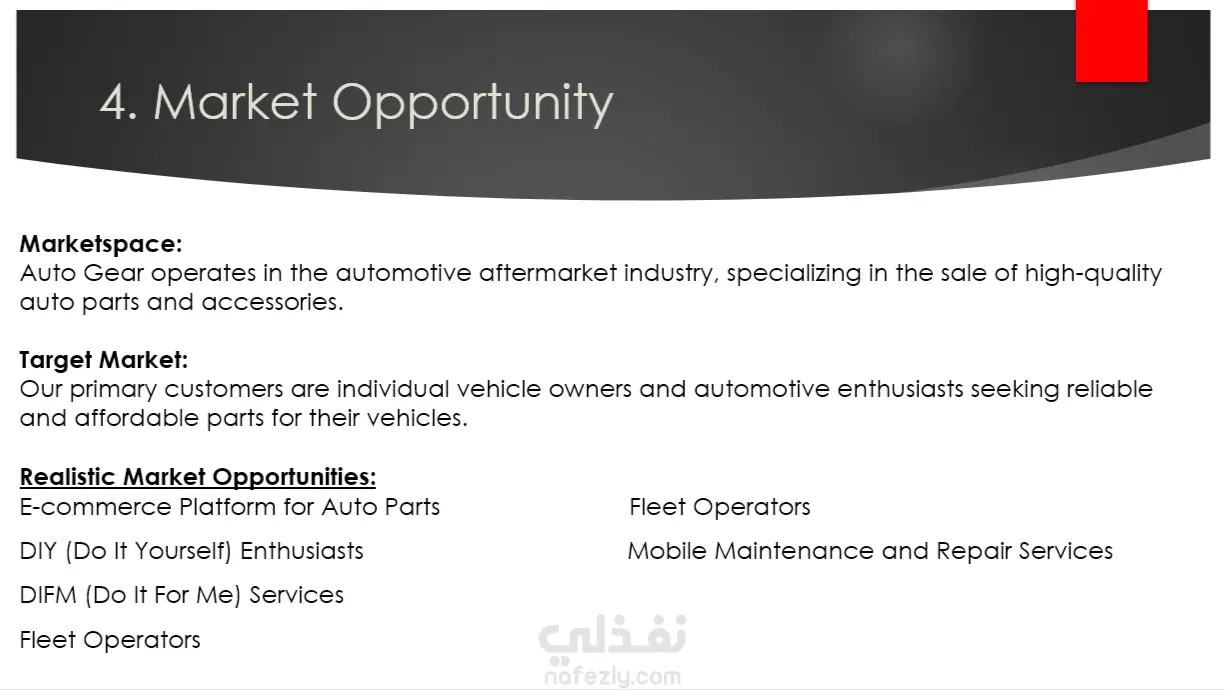 - فرص واقعية: التوسع في خدمات الصيانة المتنقلة، وخدمات الأساطيل، وشراكة مع مراكز الصيانة الكبرى.