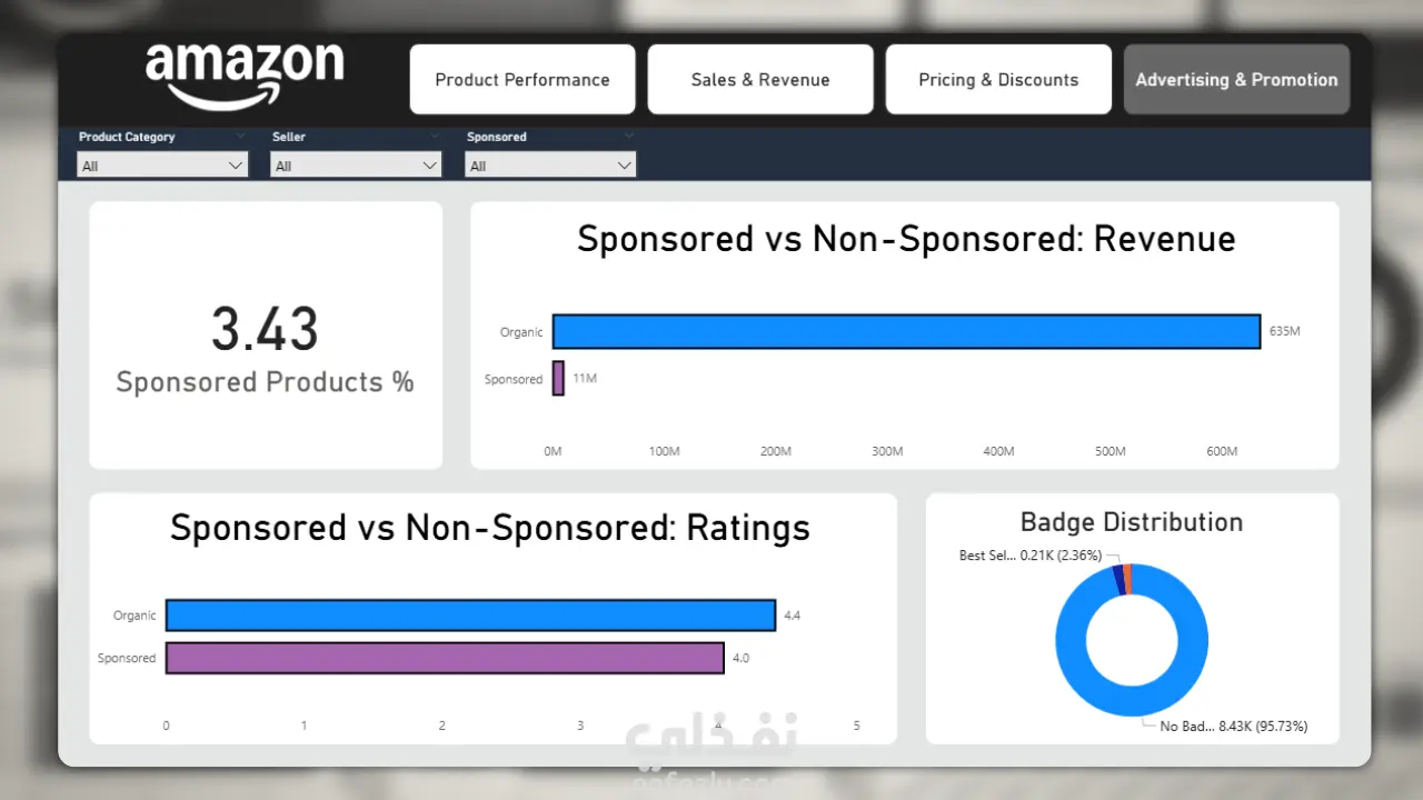 الإعلانات والترويج: تحليل مقارن بين الإيرادات الناتجة عن المنتجات الممولة (Sponsored) والغير ممولة (Organic).