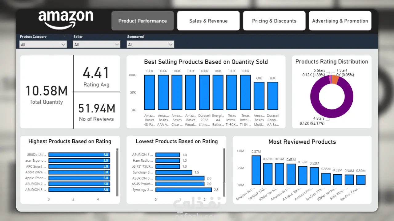 تم في هذا المشروع بناء لوحة بيانات تفاعلية متكاملة لتحليل أداء مبيعات متجر أمازون، بهدف تحويل البيانات الخام إلى رؤى (Insights) واضحة وقابلة للتنفيذ لدعم اتخاذ القرار.